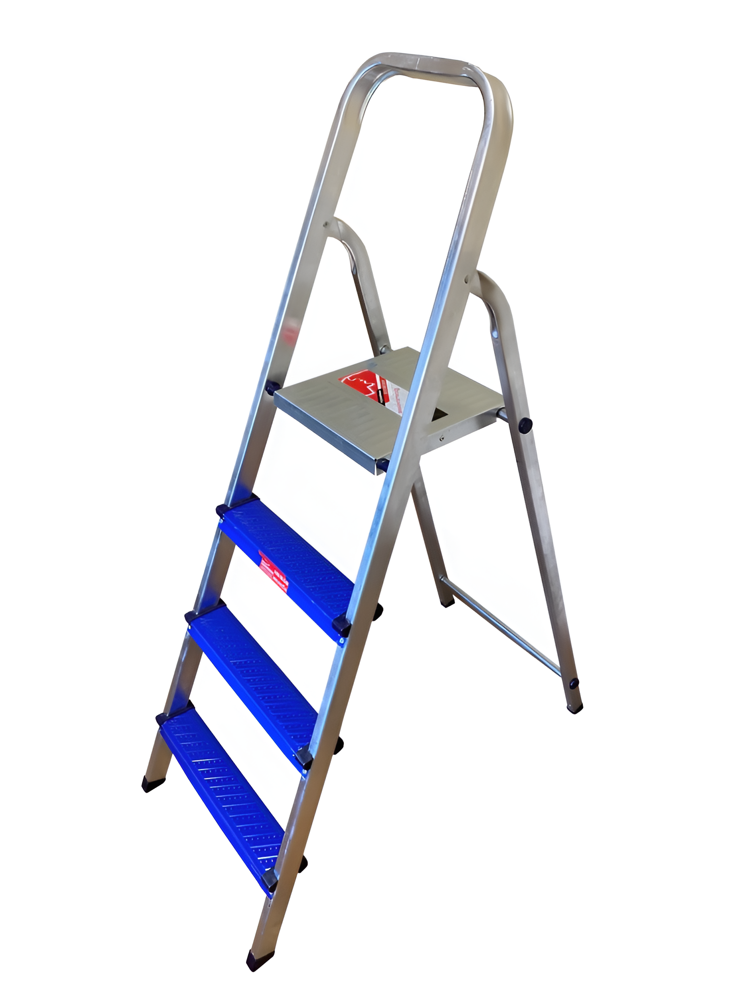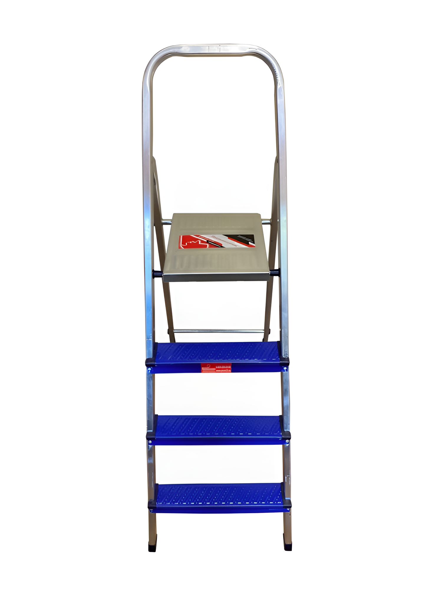 Изготовлена из алюминиево-стального сплава особой прочности. Широкие ступени из высококачественного профиля выдерживают нагрузку до 150 кг. Имеет пластиковые колпачки на ножках для устойчивости. Накладки на ступени предотвращают скольжение. Легко собирается.