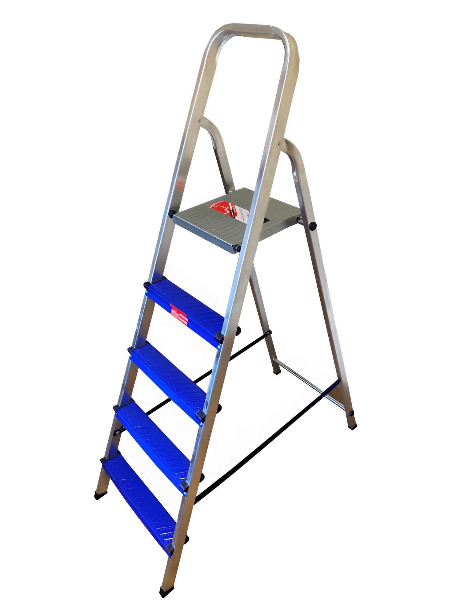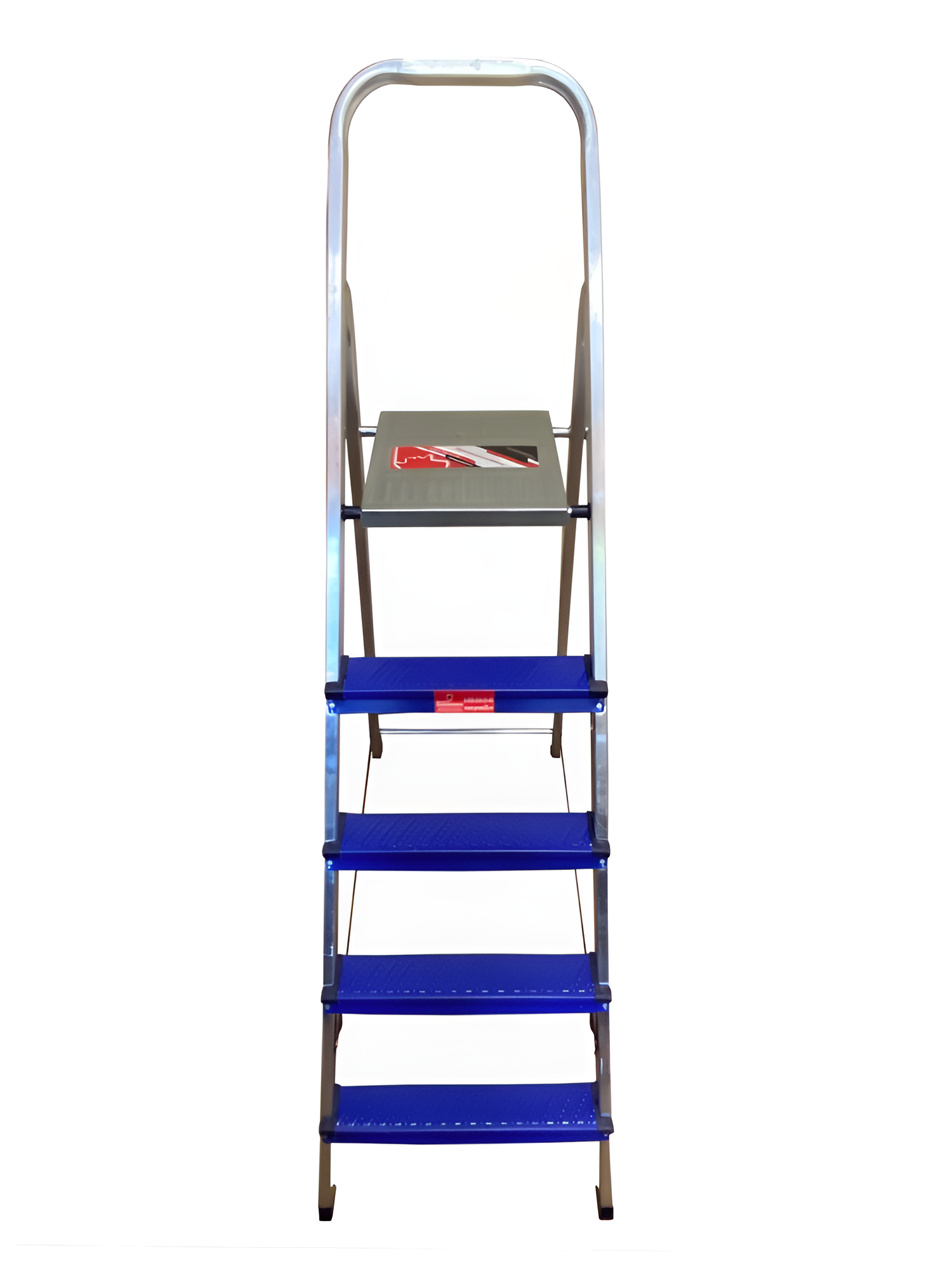 Изготовлена из алюминиево-стального сплава особой прочности. Широкие ступени из высококачественного профиля выдерживают нагрузку до 150 кг. Имеет пластиковые колпачки на ножках для устойчивости. Накладки на ступени предотвращают скольжение. Легко собирается.