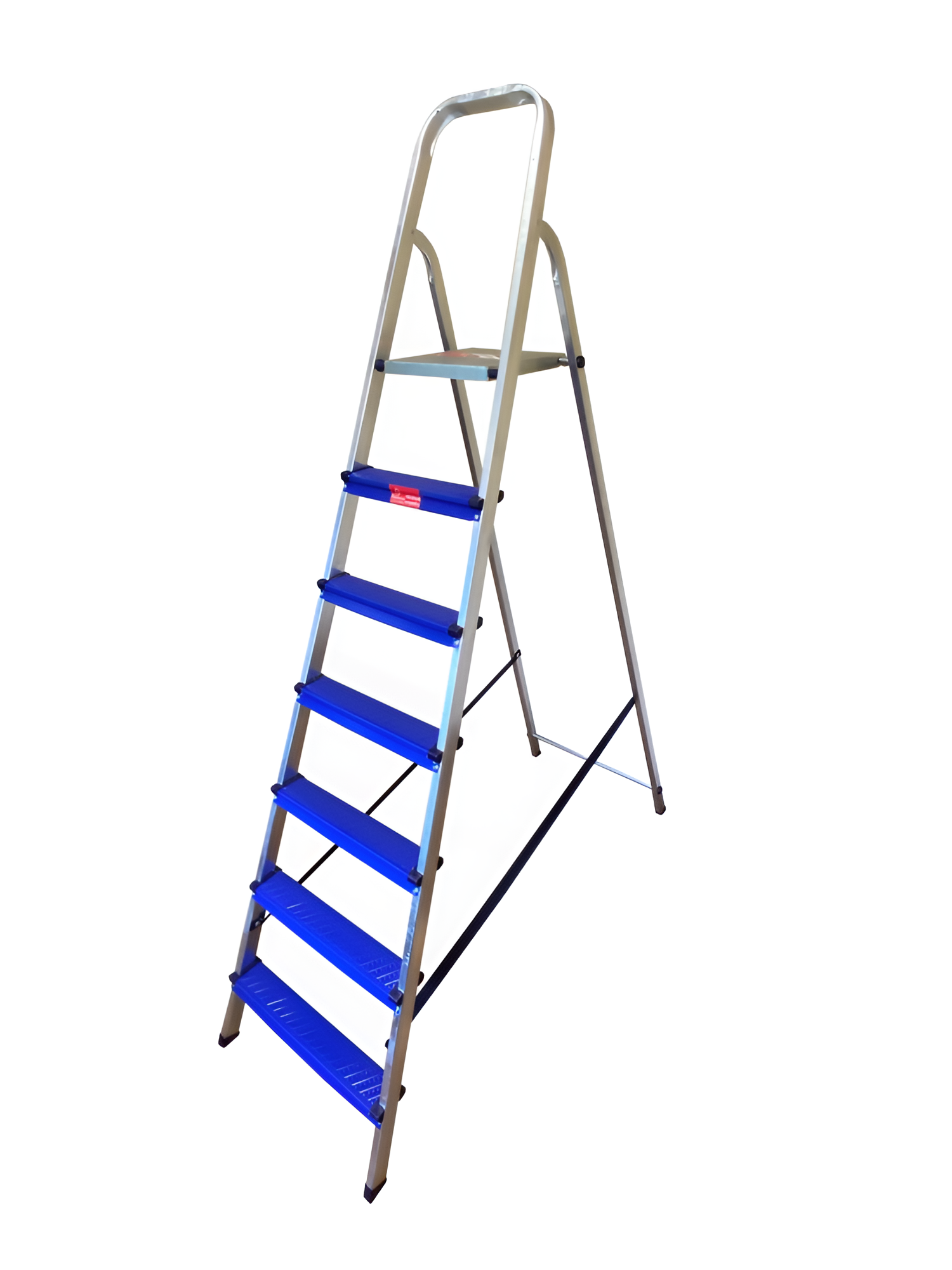 Изготовлена из алюминиево-стального сплава особой прочности. Широкие ступени из высококачественного профиля выдерживают нагрузку до 150 кг. Имеет пластиковые колпачки на ножках для устойчивости. Накладки на ступени предотвращают скольжение. Легко собирается.