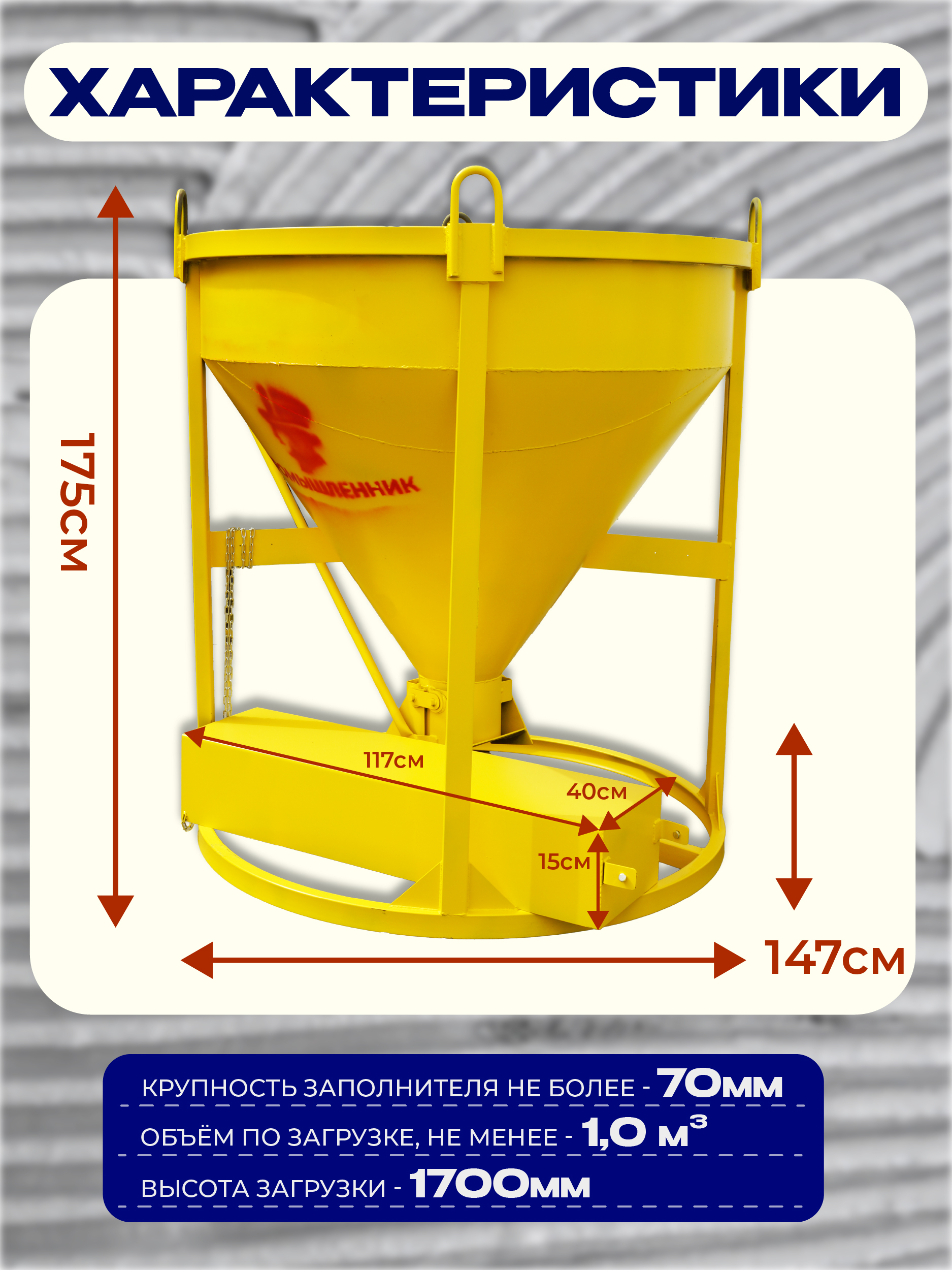 Бадья для бетона TeaM БН 1,0 м3 c лотком