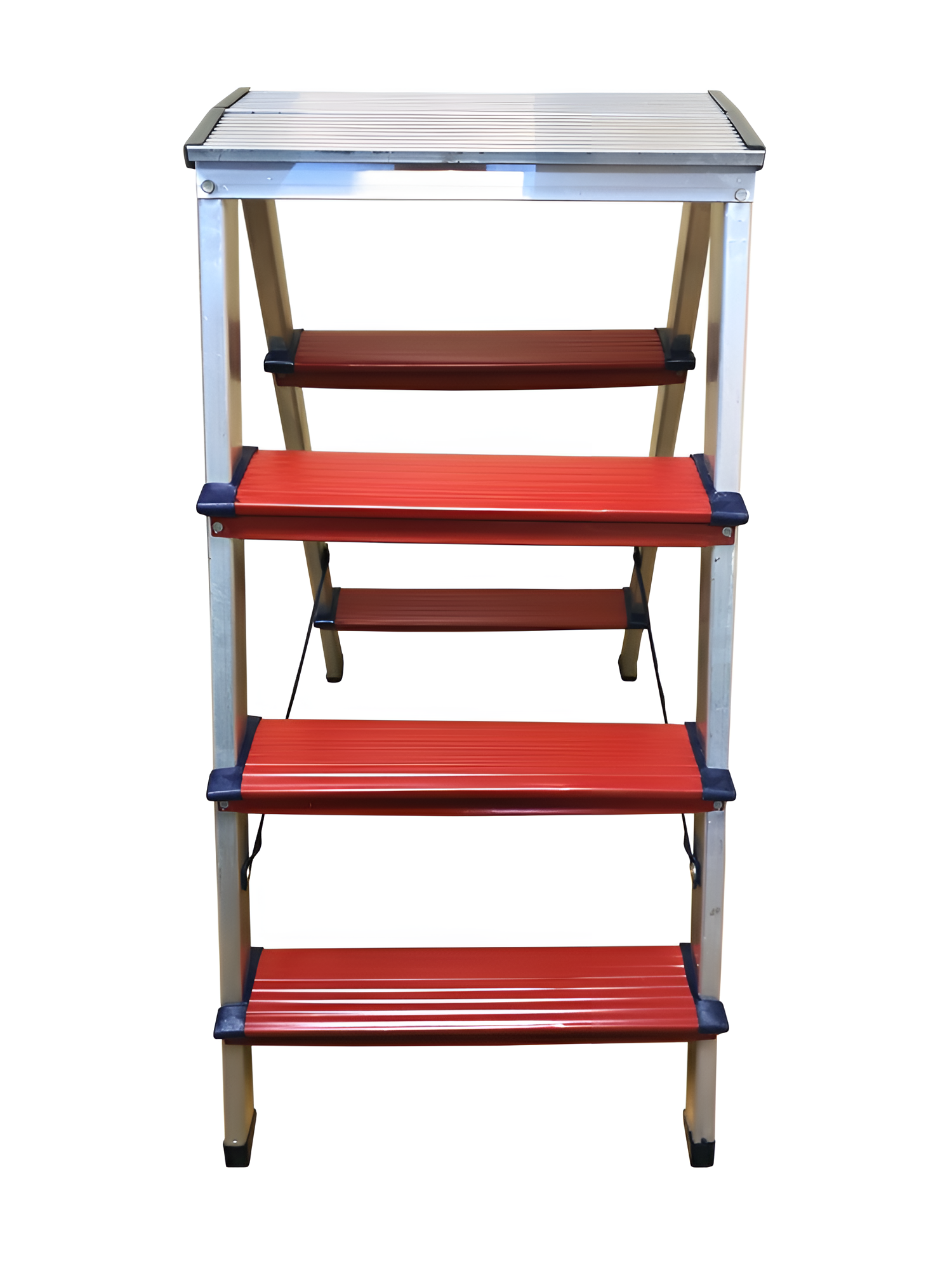 Изготовлена из алюминия. Широкие ступени из высококачественного профиля выдерживают нагрузку до 150 кг. Имеет пластиковые колпачки на ножках для устойчивости. Накладки на ступени предотвращают скольжение. Легко собирается.