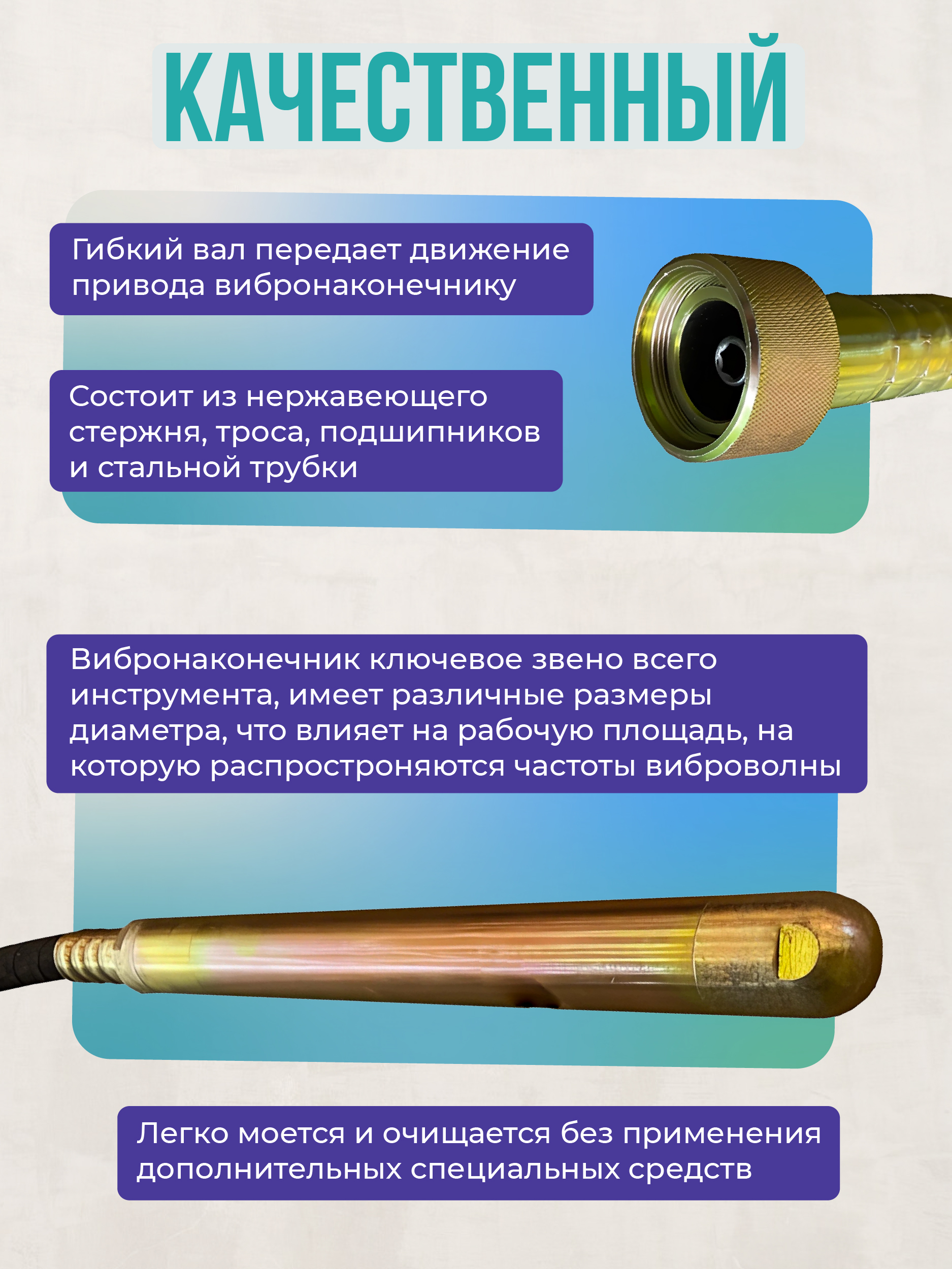 Глубинный вибратор приобретается отдельно. Гибкий вал совместим с глубинными вибраторами серии ВЭ.