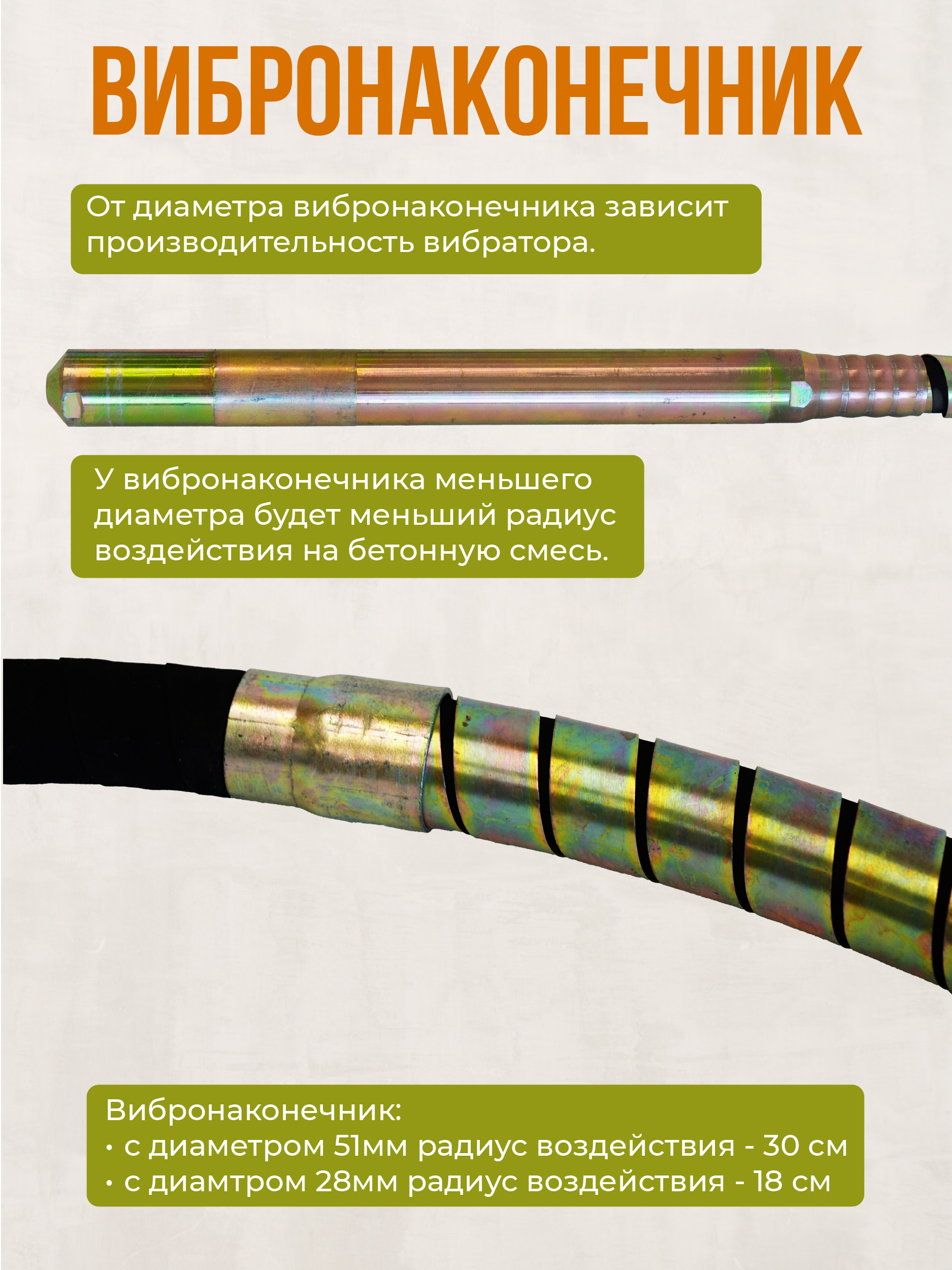 Совместим с глубинными вибраторами ЭП-1400 и ЭП-2200 и вибронаконечниками диаметром 51и 76 мм.