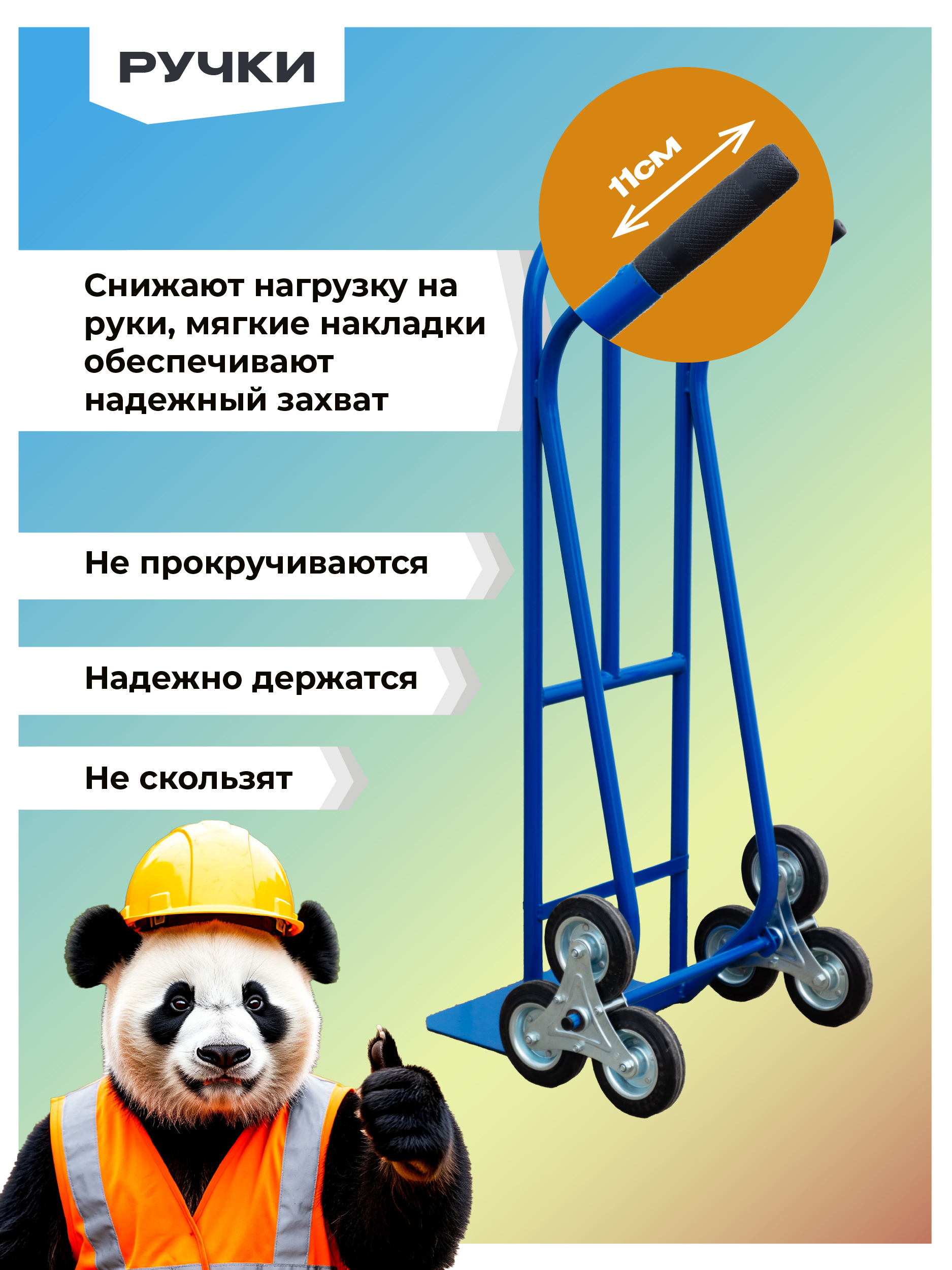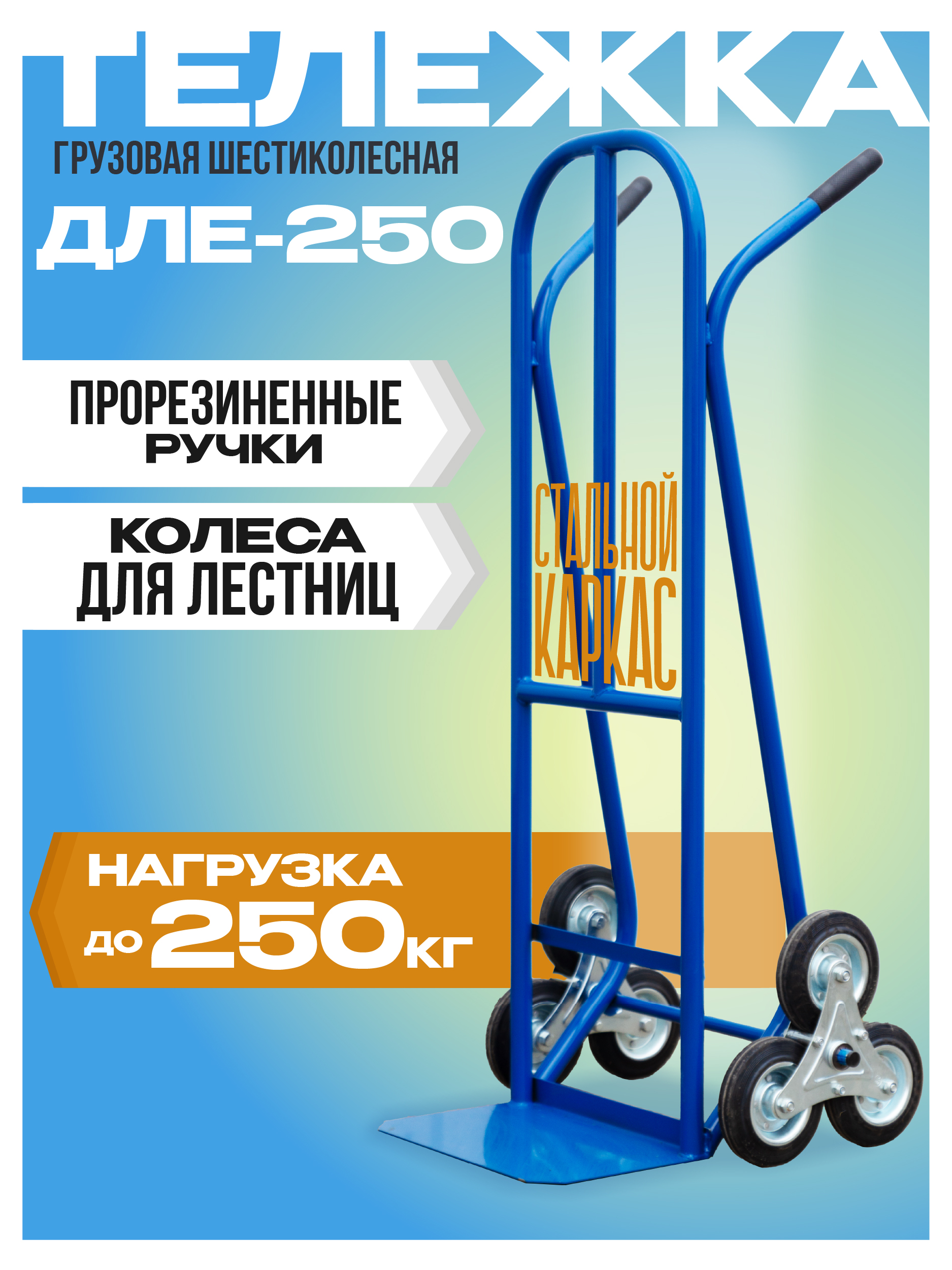 Ручная грузовая двухколесная тележка ДЛЕ-250 160 мм предназначена для облегчения перемещения грузов по лестничным маршам. Транспортный механизм состоит из 2-х блоков по три колеса диаметром 160 мм. Прокручиваясь он облегчает движение по вертикали и горизонтали. Тележка изготовлена из высококачественной стали. Сварные швы придают жесткость конструкции. Для удобства перевозки снабжена широкой грузовой площадкой и высокими ручками.