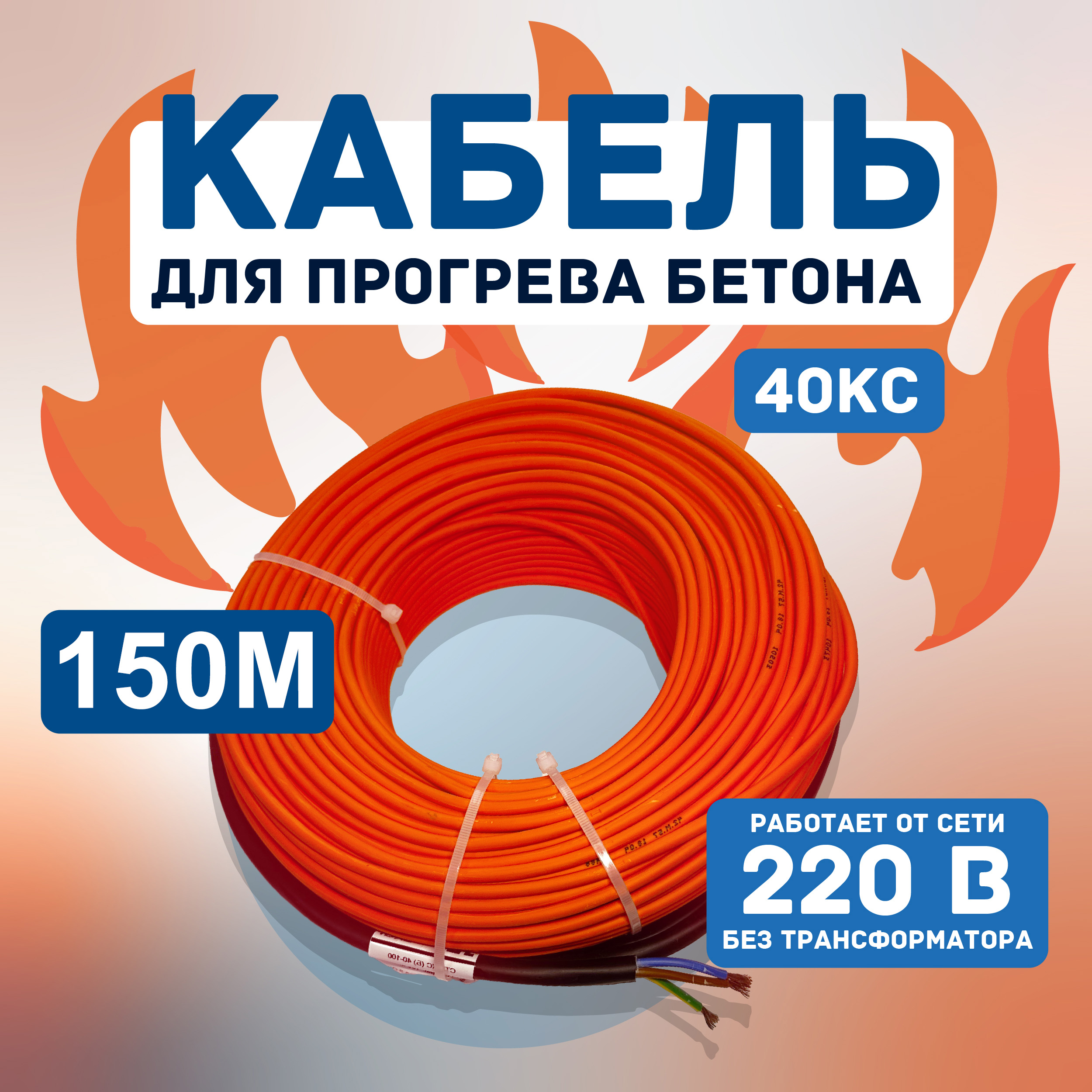 Кабель для прогрева бетона 40КС-150 используется для ускорения застывания бетонной смеси и обогрева железобетона в холодное время года. Состоит из двухжильного резистивного провода с концевой муфтой с одной стороны и установочной части с соединительной муфтой с другой стороны, уложенных в виде нагревательной секции длиной 150 м. Работает от обычной сети 220-240 В, не требует наличия и подключения к дорогостоящему трансформатору. Степень защиты IP67. Суммарная мощность обогрева секции 6000 Вт/ч.