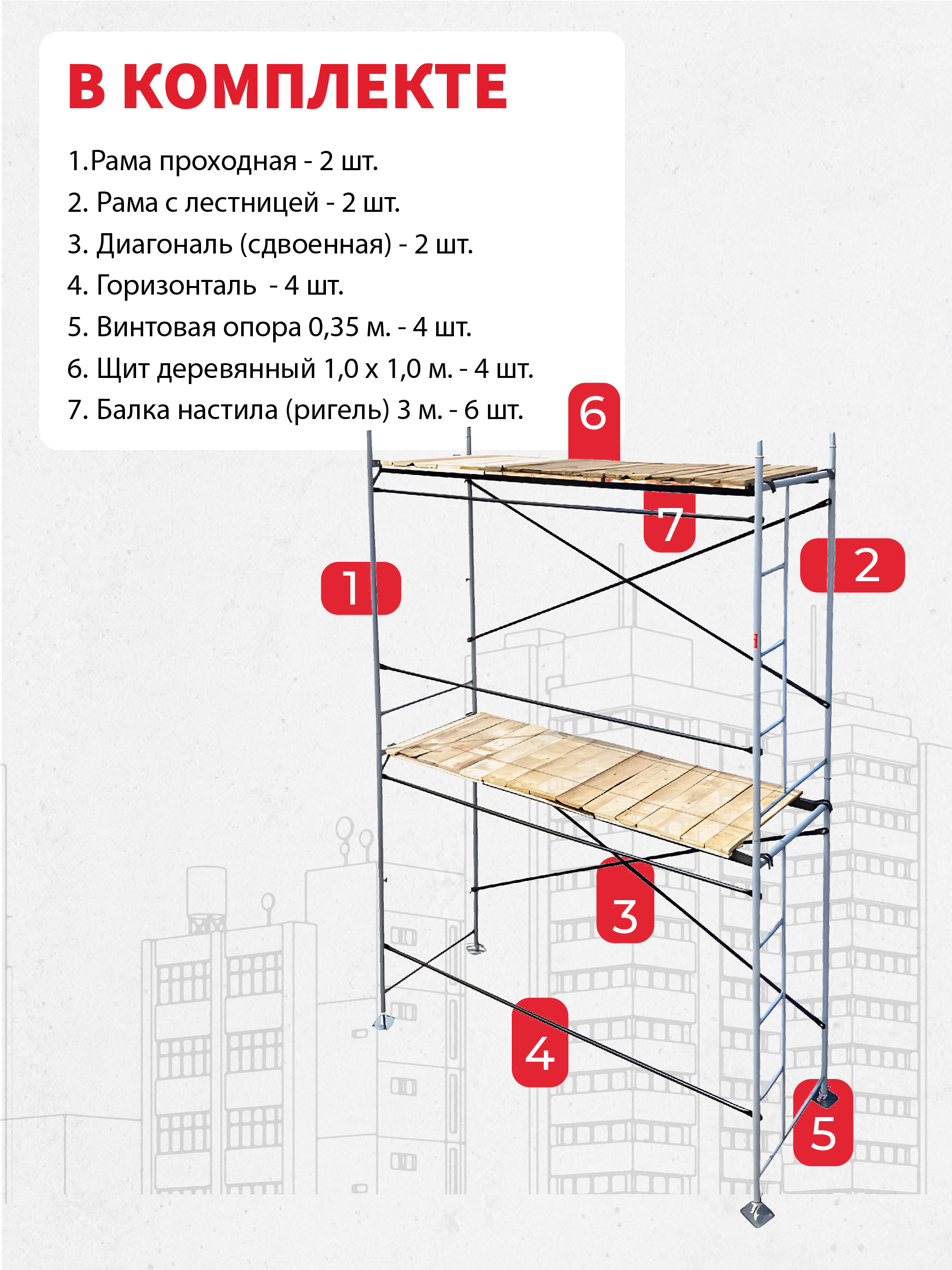Главная » Каталог » Строительные леса » Секции и комплекты рамных лесов ЛРСП » Леса строительные рамные TeaM ЛРСП 30 комплект 3×4 м