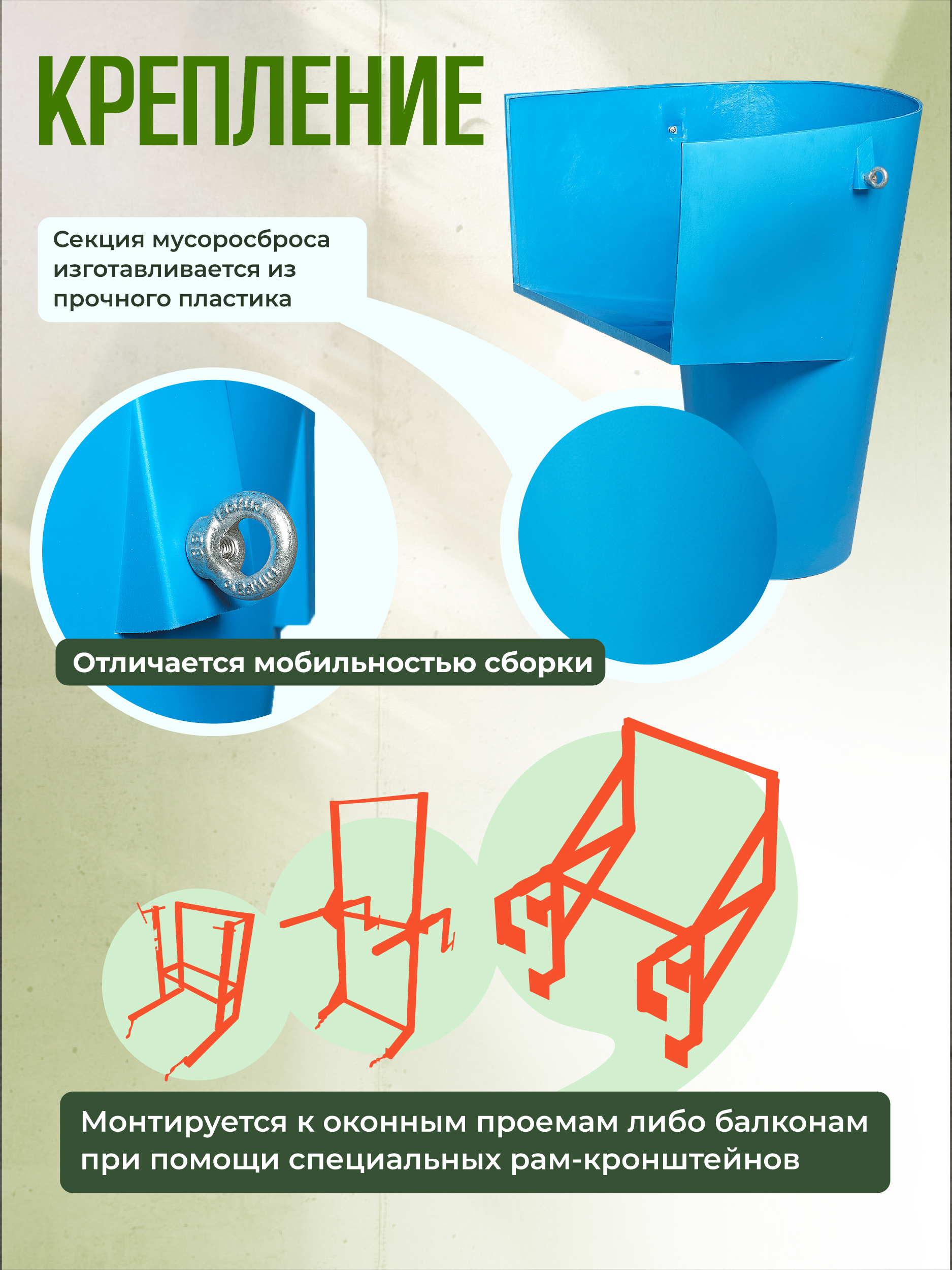 - Крепить мусоросброс к зданию каждые 10 м при помощи кронштейнов.