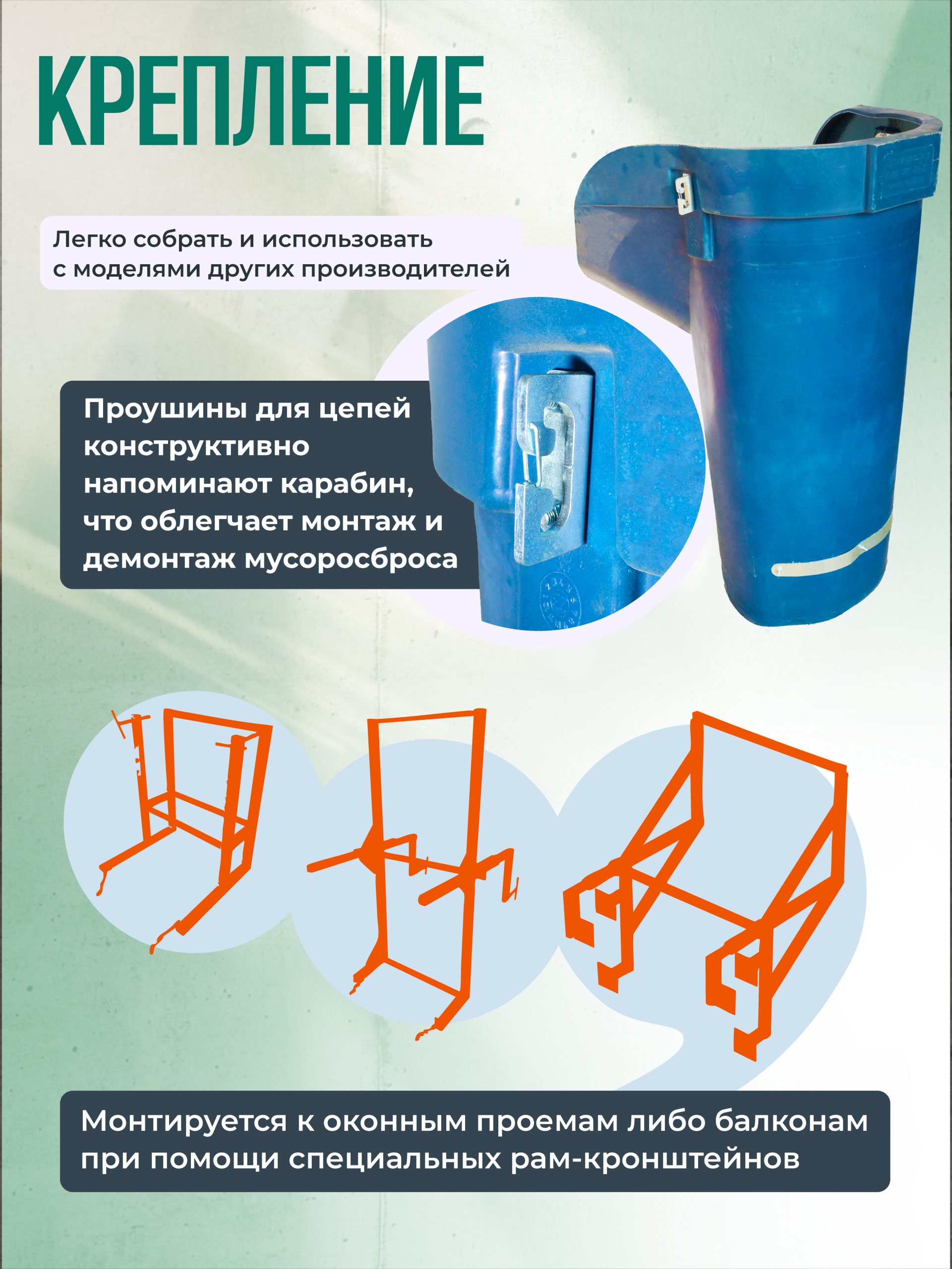 - Крепить мусоросброс к зданию каждые 10 м при помощи кронштейнов.