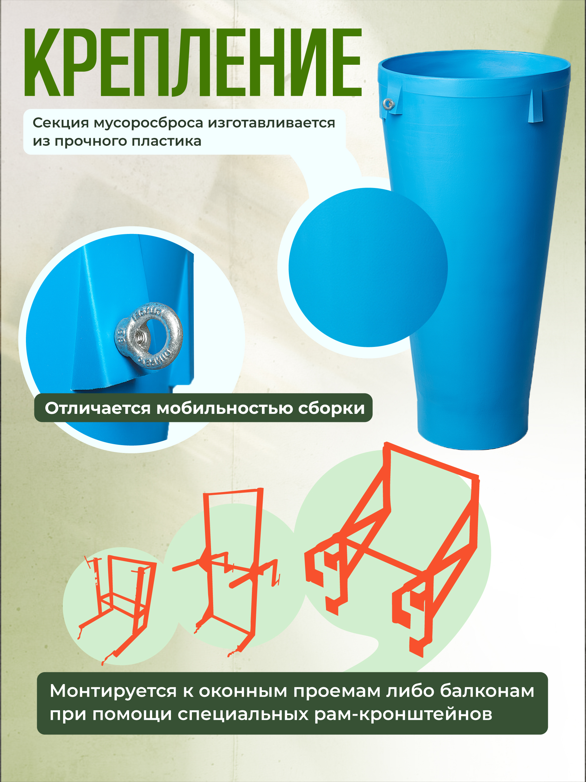 • Крепить мусоросброс к зданию каждые 10 м при помощи кронштейнов.