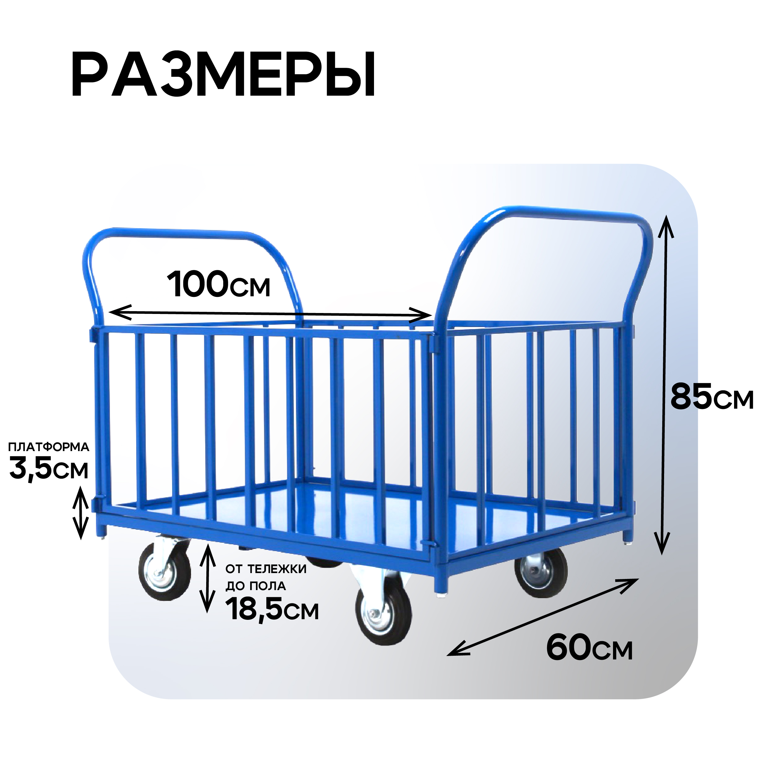 Платформенная тележка с четырьмя колесами 125 мм предназначена для работы по перевозке грузов на складах, логистических центрах, объектов торговли и прочих мест, где необходимо перевозить товары весом до 350 килограмм. Высокий трубчатый бортик исключают падение товара с платформы. При этом максимальная высота загрузки товара — 50 см. При необходимости борт можно снять. Наличие двух ручек помогает перемещать изделие в узких коридорах. Размер платформы — 1000х600 мм, высота платформы от земли — 30 мм. Тележка покрыта порошково-полимерной краской для защиты от коррозии и механических повреждений. В комплект входит полный набор метизов для сборки изделия.