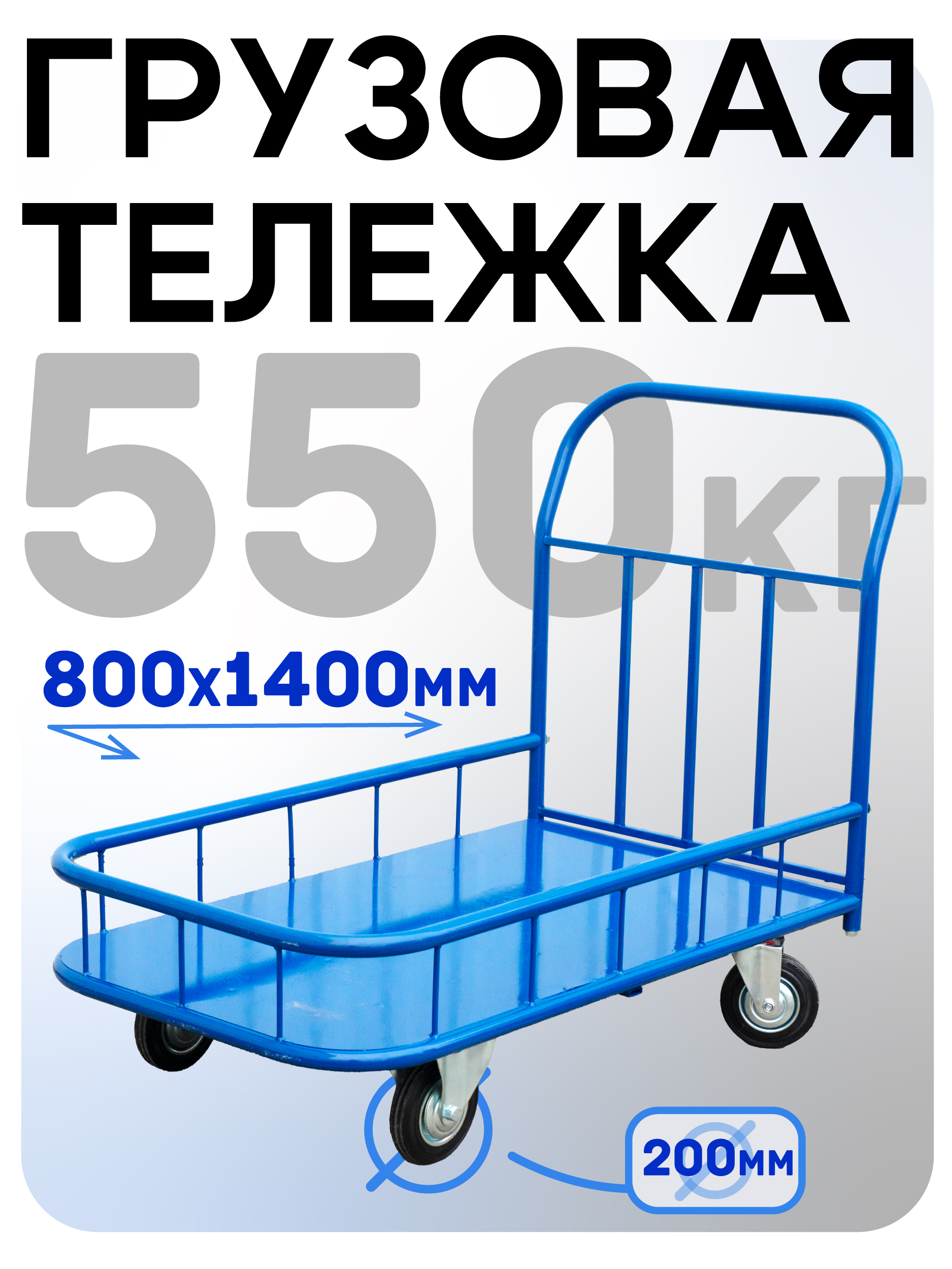 Платформенная тележка с четырьмя колесами 200 мм предназначена для работы по перевозке грузов на складах, логистических центрах, объектов торговли и прочих мест, где необходимо перевозить товары весом до 550 килограмм. Бортики из труб высотой 15 см препятствуют падению товара с платформы. Борт у данной модели не снимается. Наличие двух ручек помогает перемещать изделие в узких коридорах. Размер платформы — 1400х800 мм, высота платформы от земли — 30 мм. Тележка покрыта порошково-полимерной краской для защиты от коррозии и механических повреждений. В комплект входит полный набор метизов для сборки изделия.