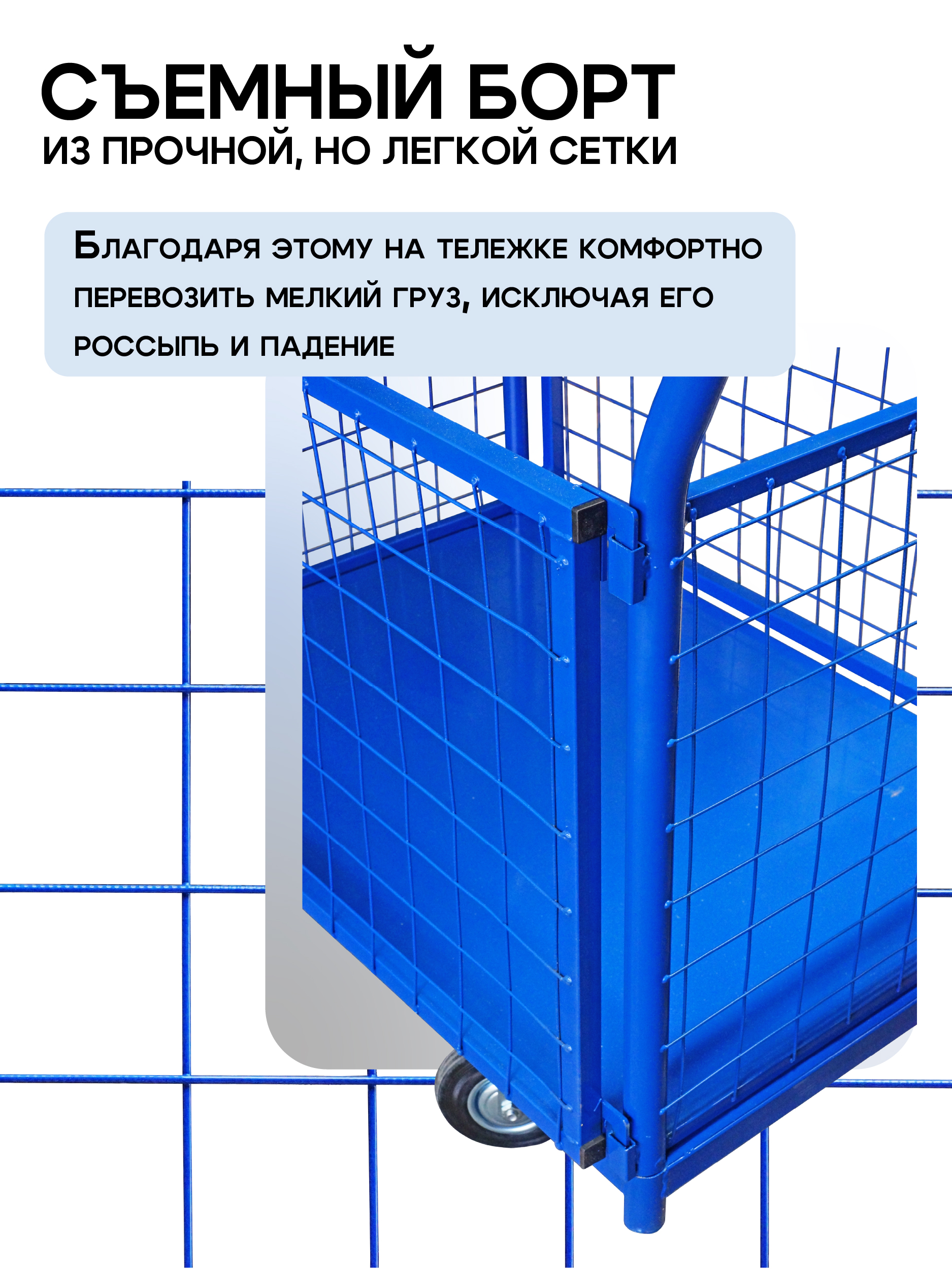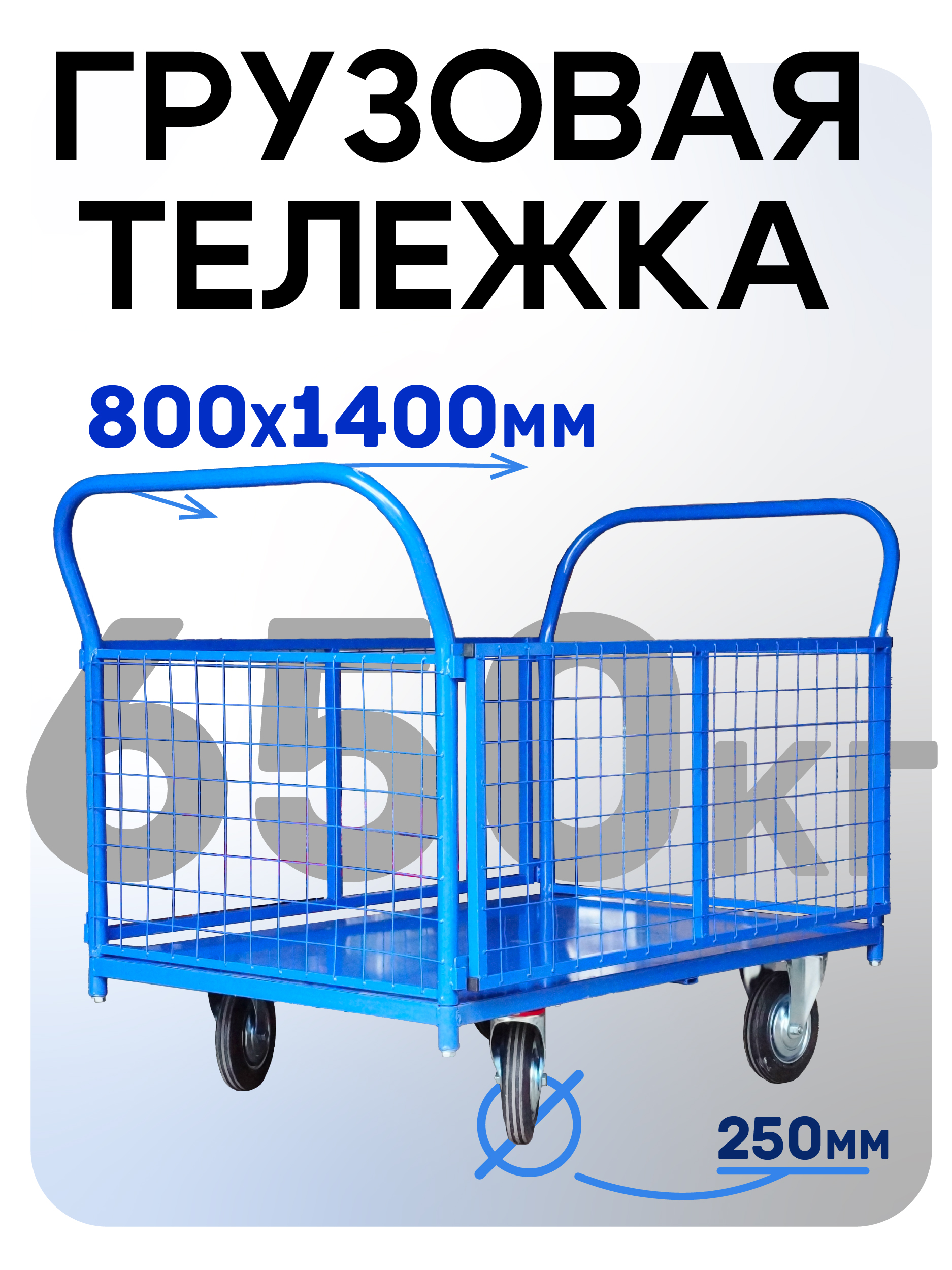 Платформенная тележка с четырьмя колесами 250 мм предназначена для работы по перевозке грузов на складах, логистических центрах, объектов торговли и прочих мест, где необходимо перевозить товары весом до 550 килограмм. Размер платформы — 1400х800 мм, высота платформы от земли — 30 мм. Съемный борт высотой 50 см выполнен из прочной, но легкой сетки. За счет него на данной тележке комфортно перевозить мелкий груз, исключая его россыпь и падение. Тележка покрыта порошково-полимерной краской для защиты от коррозии и механических повреждений. В комплект входит полный набор метизов для сборки изделия.