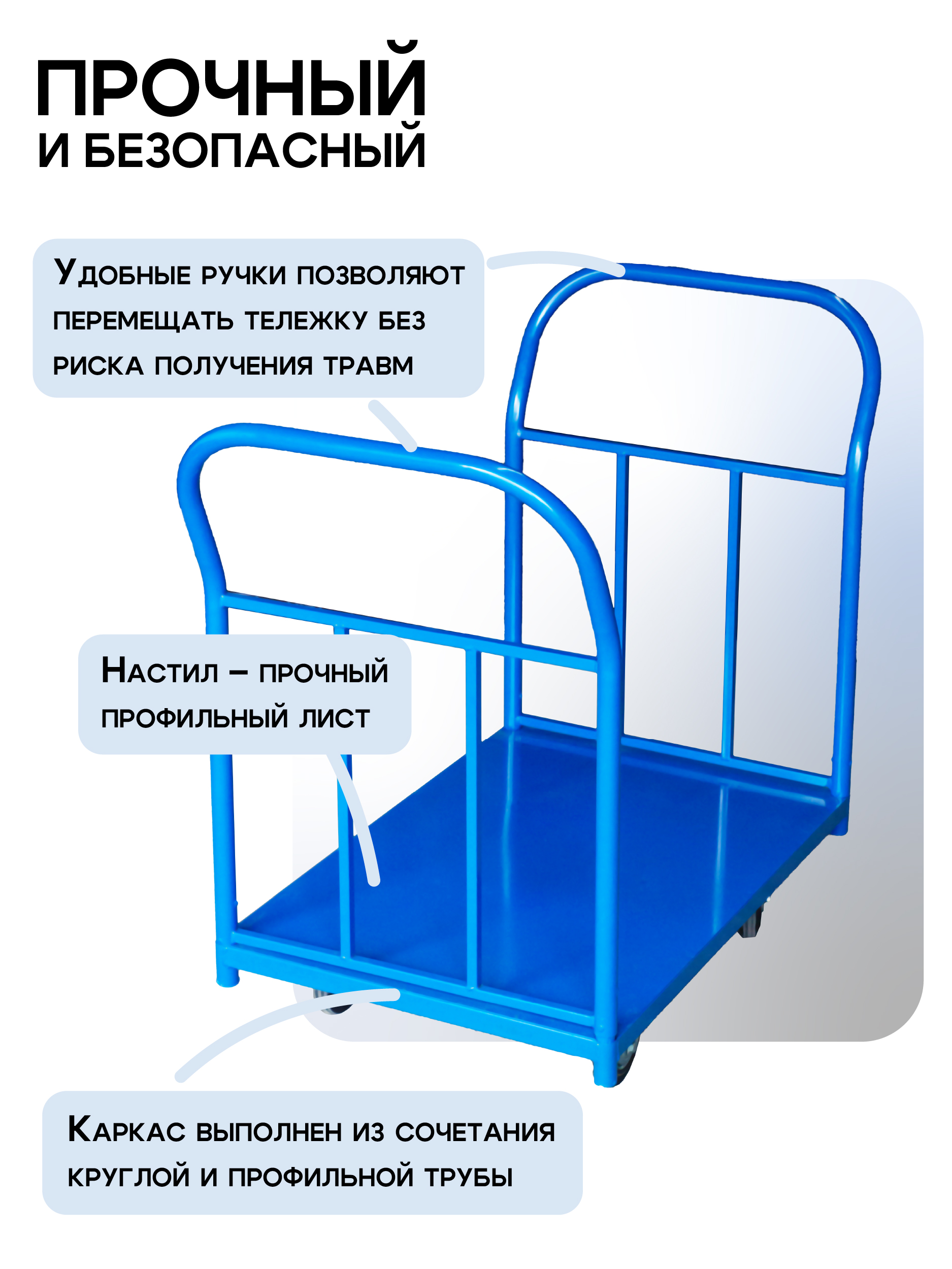 Платформенная тележка TeaM 1800х800 ПД-8.18 200 мм с двумя ручками