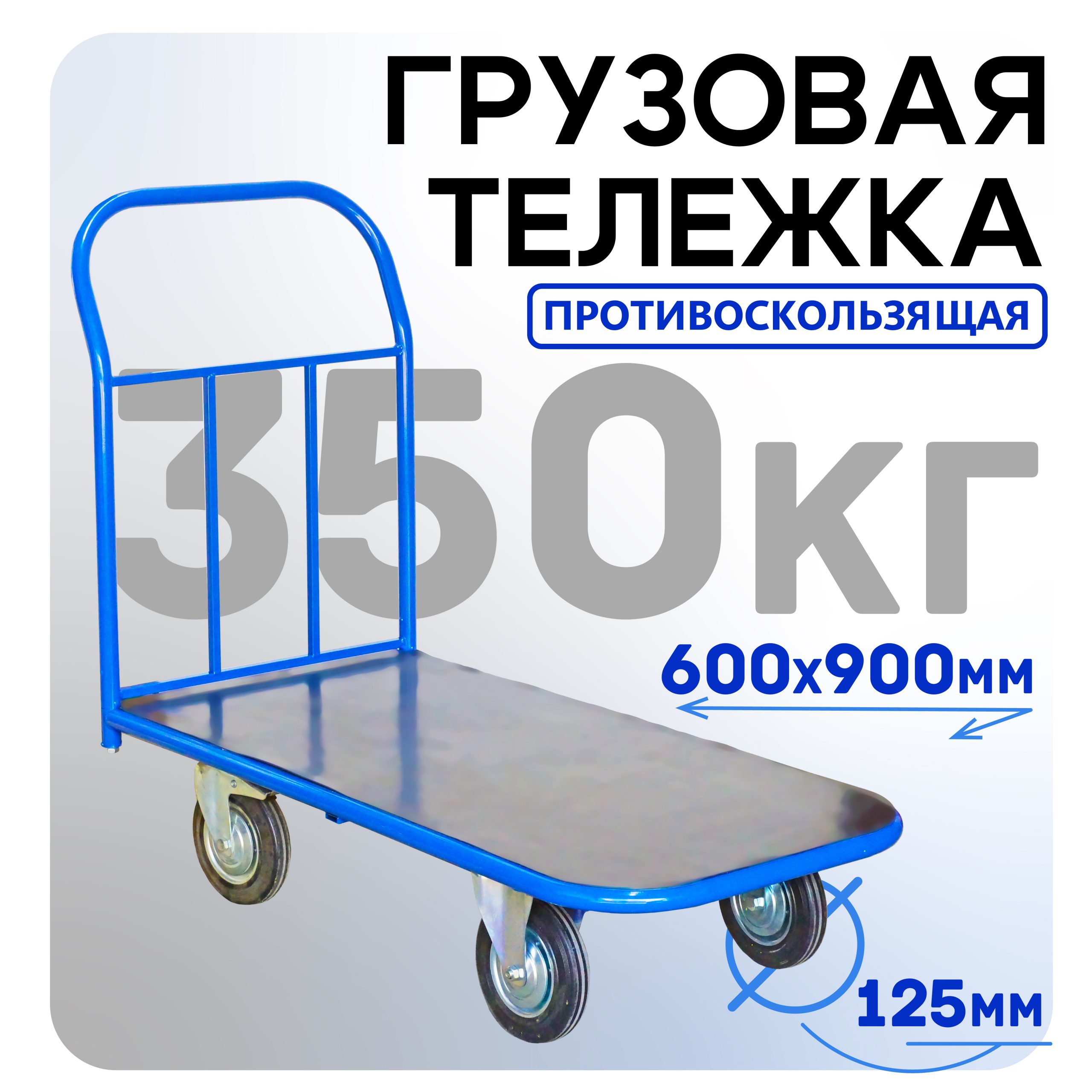 Платформенная тележка с четырьмя колесами 125 мм предназначена для работы по перевозке грузов на складах, логистических центрах, объектов торговли и прочих мест, где необходимо перевозить товары весом до 350 килограмм. Размер платформы — 900х600 мм, высота платформы от земли — 30 мм. На платформу нанесено противоскользящее покрытие из резины, препятствующее падению товара. Покрытие допускает перевозку негабаритного груза за счет увеличенного сопротивления поверхности. Тележка покрыта порошково-полимерной краской для защиты от коррозии и механических повреждений. В комплект входит полный набор метизов для сборки изделия.