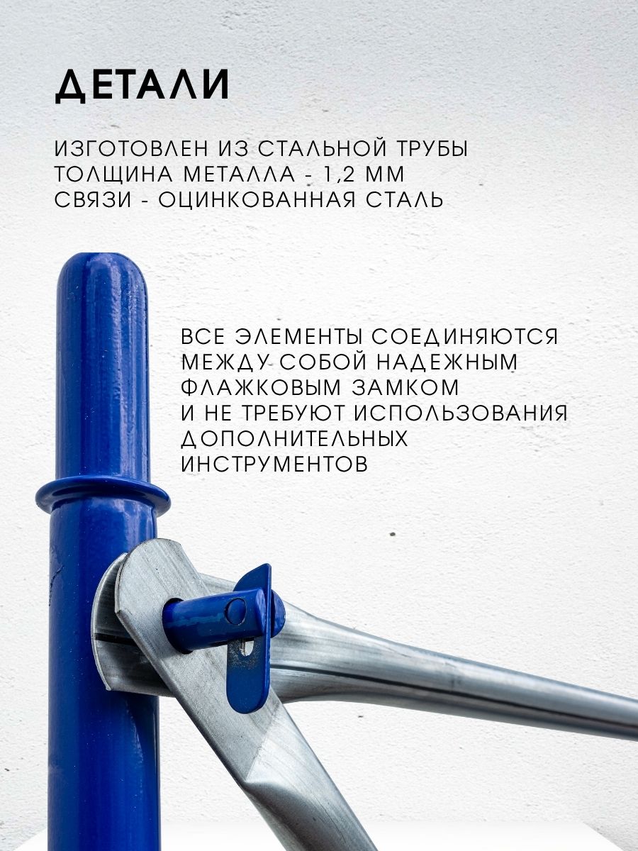 Переставить такие стальные подмости сможет даже один взрослый человек, так вес составляет всего 29 кг. Конструкция легко разбирается и транспортируется, а для сборки на объекте не требуется дополнительное оборудование.