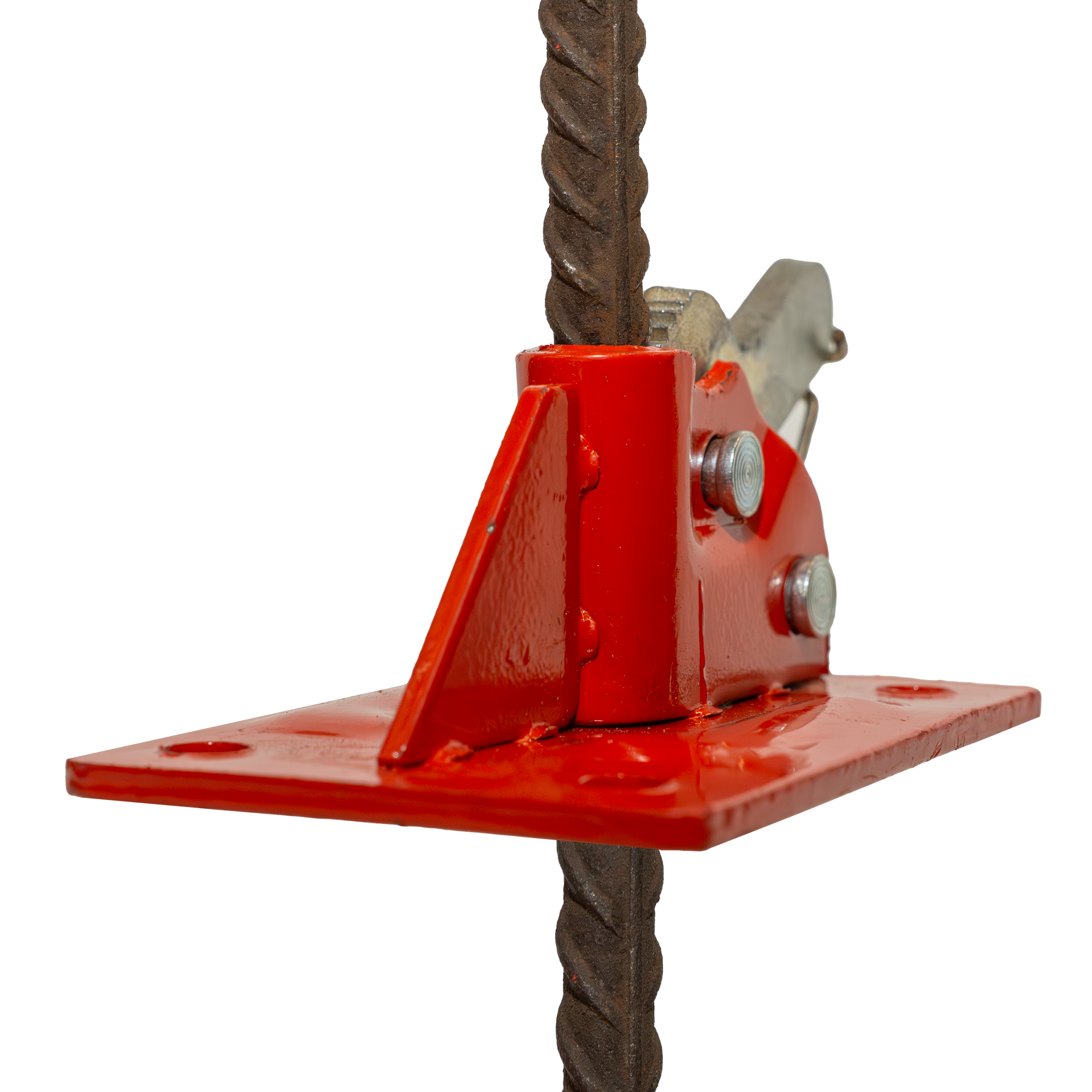 Зажим устанавливается на арматуру диаметром от 6 до 10 мм и затягивается с помощью специального ключа, который можно приобрести отдельно. Он может использоваться как с щитовой опалубкой, так и с ламинированной фанерой при монтаже фундаментов, тоннельных шахт, стен, колонн и других элементов монолитного строительства.