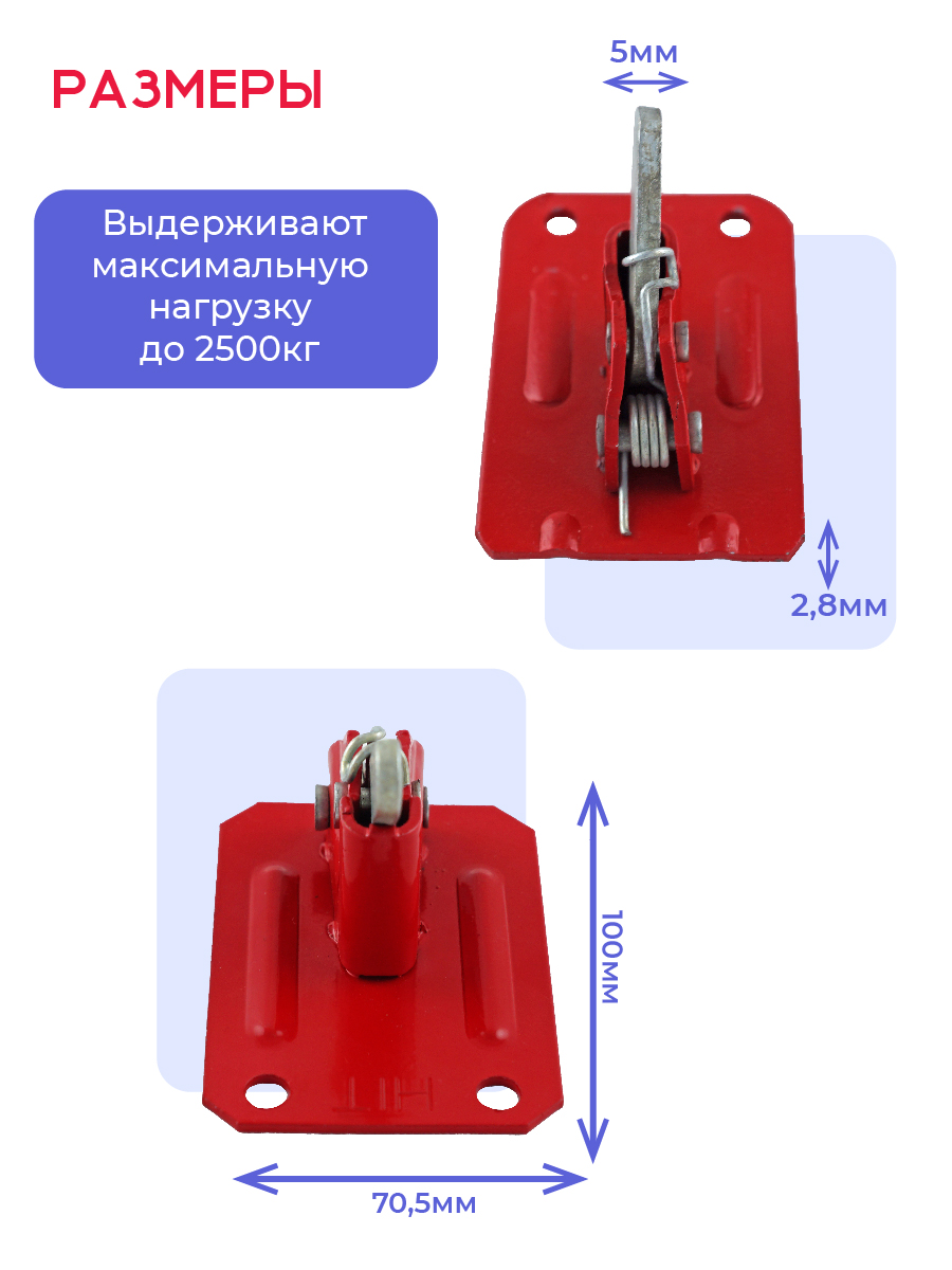 Зажим HIT для стеновой опалубки, опалубки колонн, опалубки перекрытий используется для надежной фиксации элементов опалубки. Многоразового использования, удаляется после затвердевания бетонного раствора перед разбором опалубочной конструкции. Устанавливается на арматуру (катанка, проволока) диаметром от 6 до 10 мм и затягивается специальным ключом (необходимо приобрести отдельно). Используется как с щитовой опалубкой, так и с ламинированной фанерой при монтаже опалубки фундаментов, тоннельных шахт, стен, колонн и других элементов монолитного строительства. Конструкция зажима включает: язычок толщиной 5 мм с острыми зубцами из закаленного металла, обработанного оцинкованным составом; крепежный механизм в направляющем корпусе со сверхпрочной пружиной; платформу из стали толщиной 2.5 мм и размером 70.5х100 мм. Один зажим выдерживает нагрузку до 2500 кг.