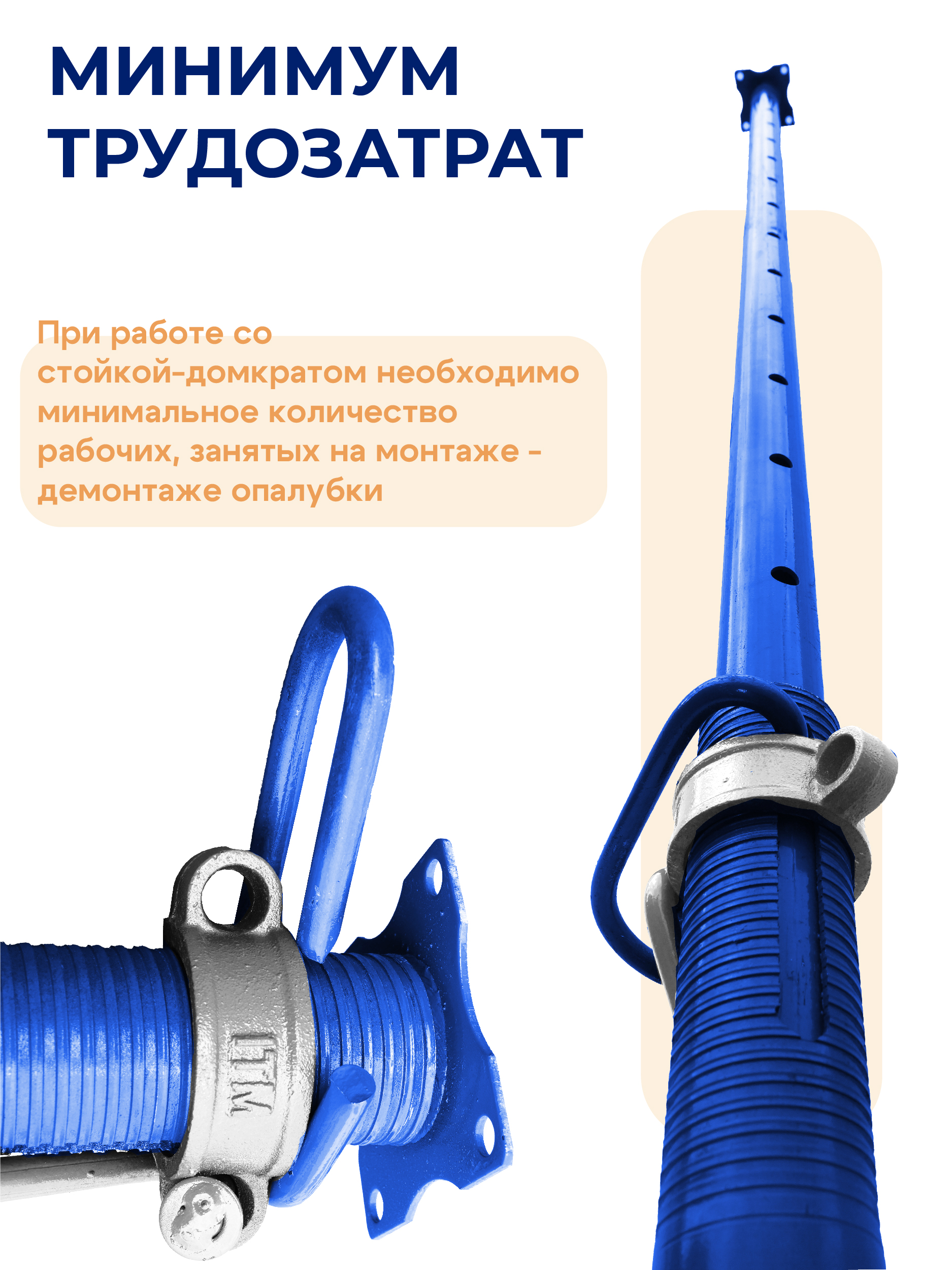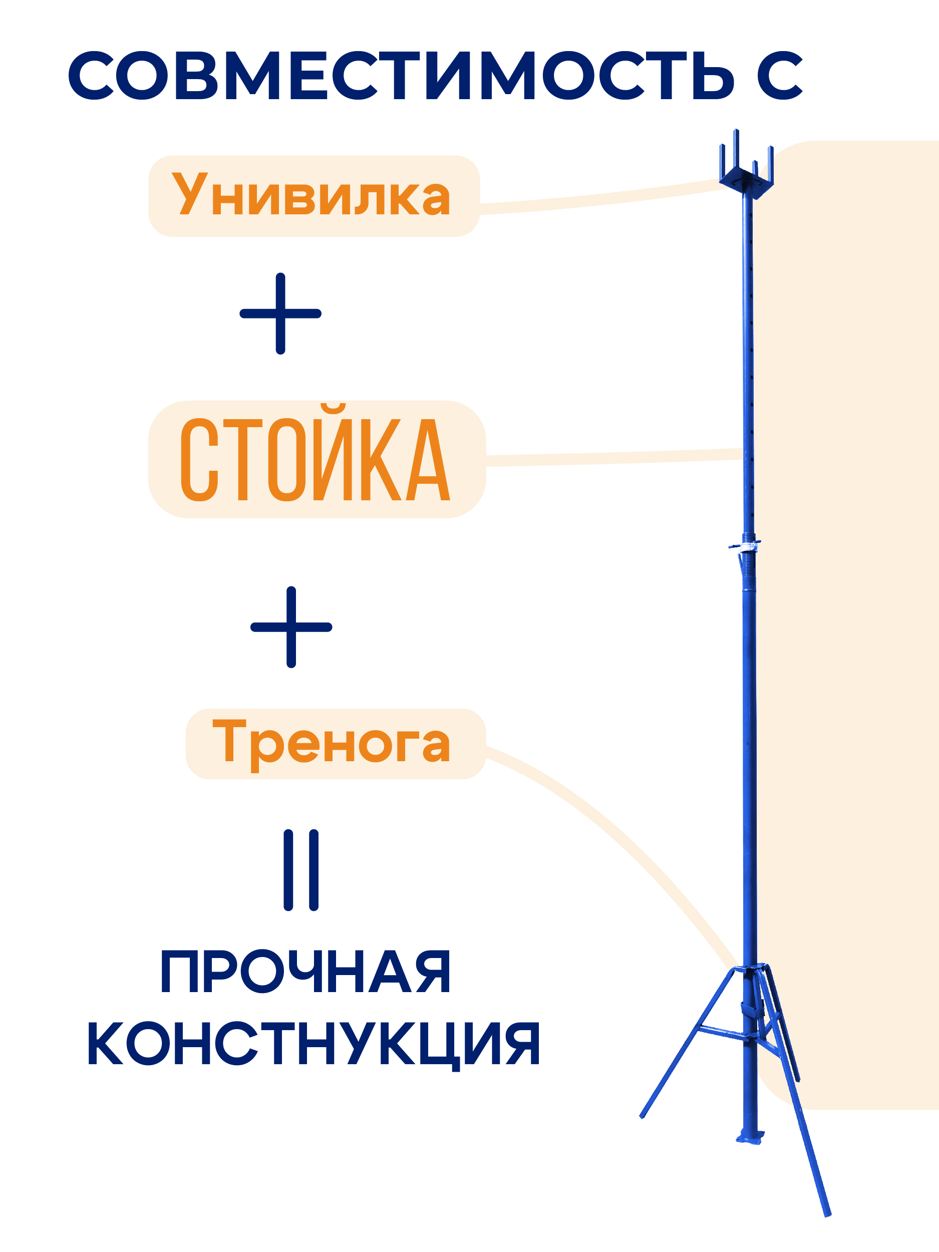 ВНИМАНИЕ! В комплектацию товара входит только стойка опалубки. Тренога и унивилка приобретаются отдельно. Изображения стойки опалубки в сборе представлены исключительно для ознакомления с правильной сборкой и установкой стойки-домкрата.