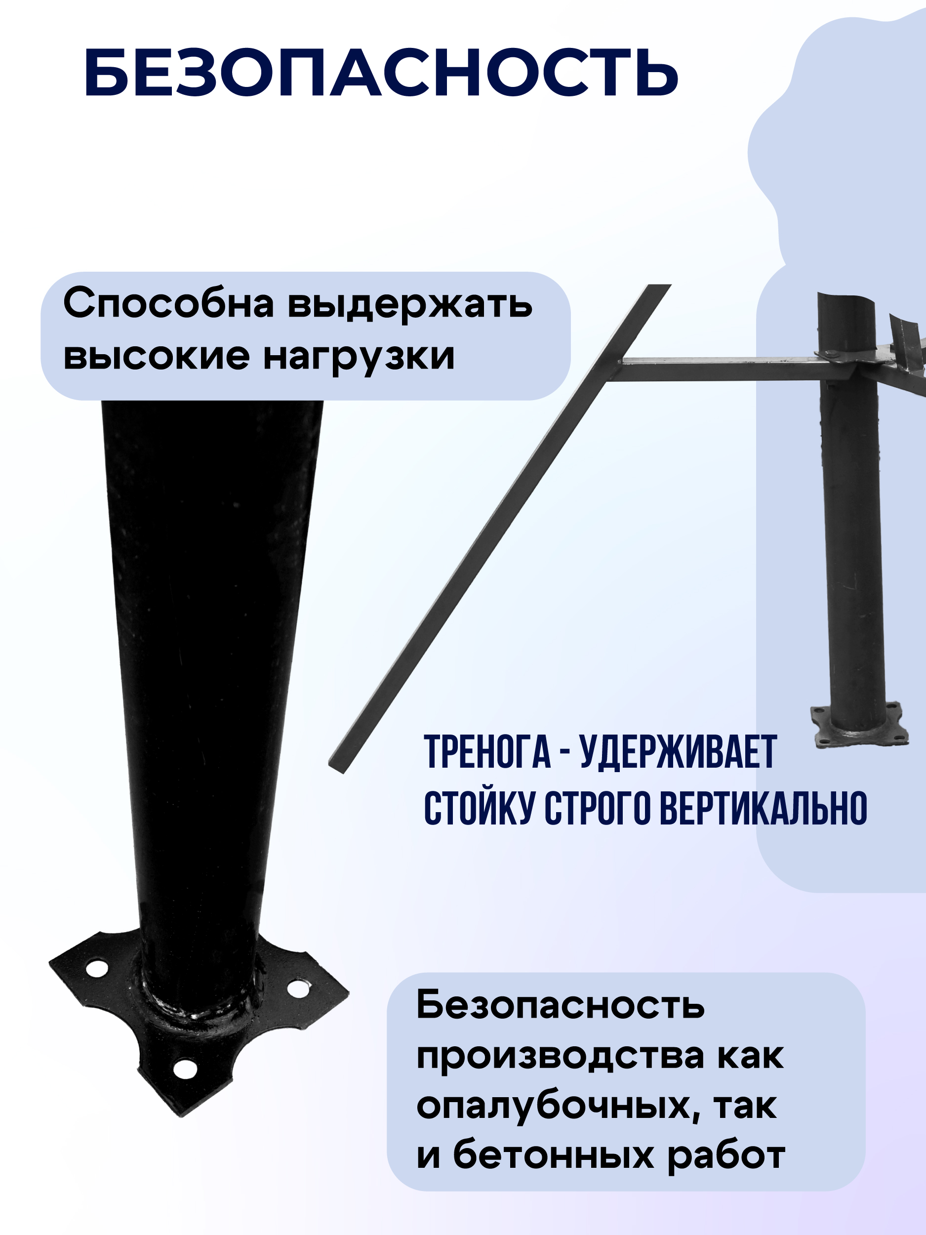 ВНИМАНИЕ! В комплектацию товара входит только стойка опалубки. Тренога и унивилка приобретаются отдельно. Изображения стойки опалубки в сборе представлены исключительно для ознакомления с правильной сборкой и установкой стойки-домкрата.