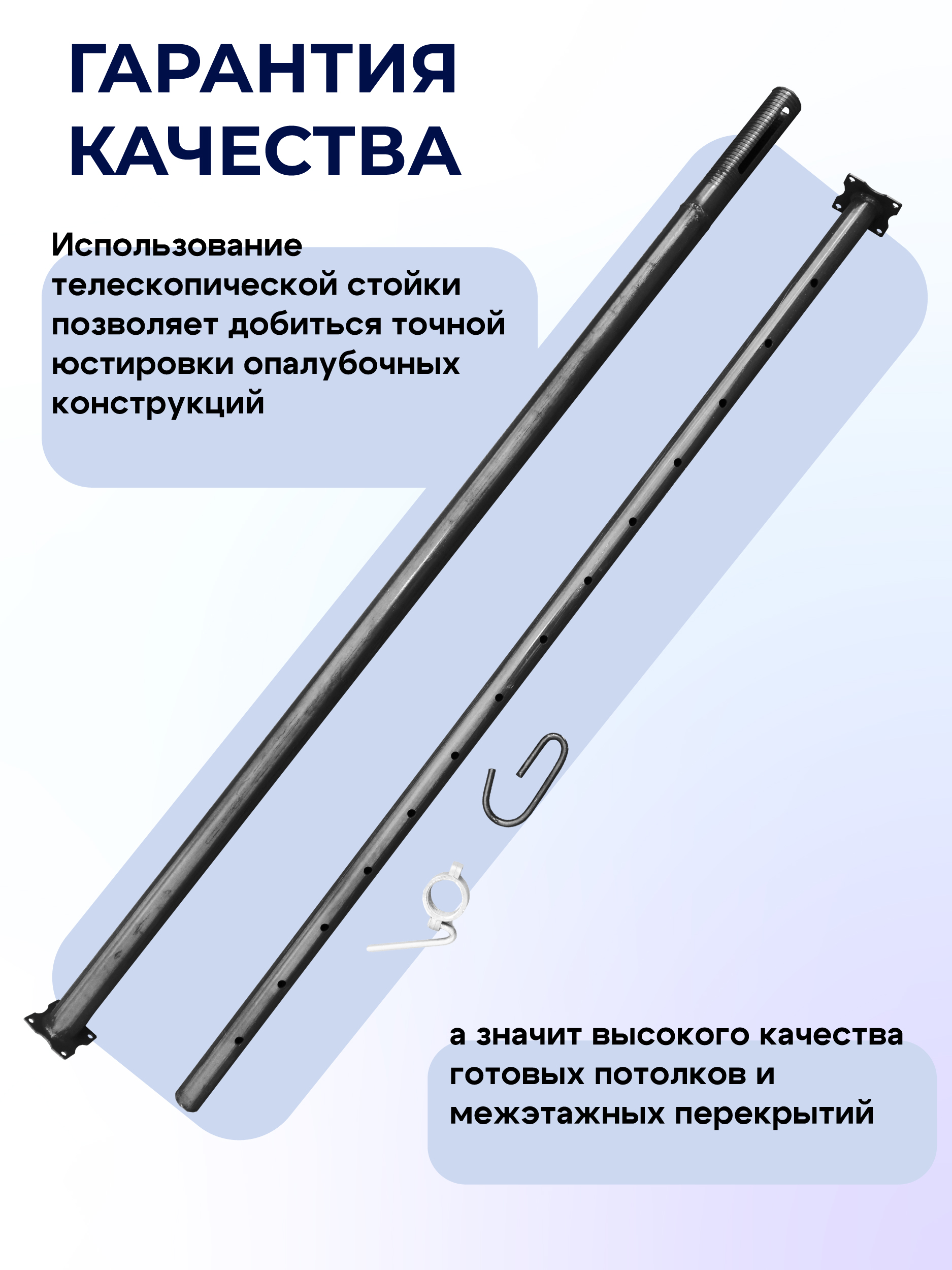 Телескопическая стойка для опалубки TeaM 3,7 м (домкрат) предназначена для поддержания горизонтальных щитов опалубки при возведении монолитных потолочных перекрытий, а также в качестве временной опоры при строительстве и ремонте.