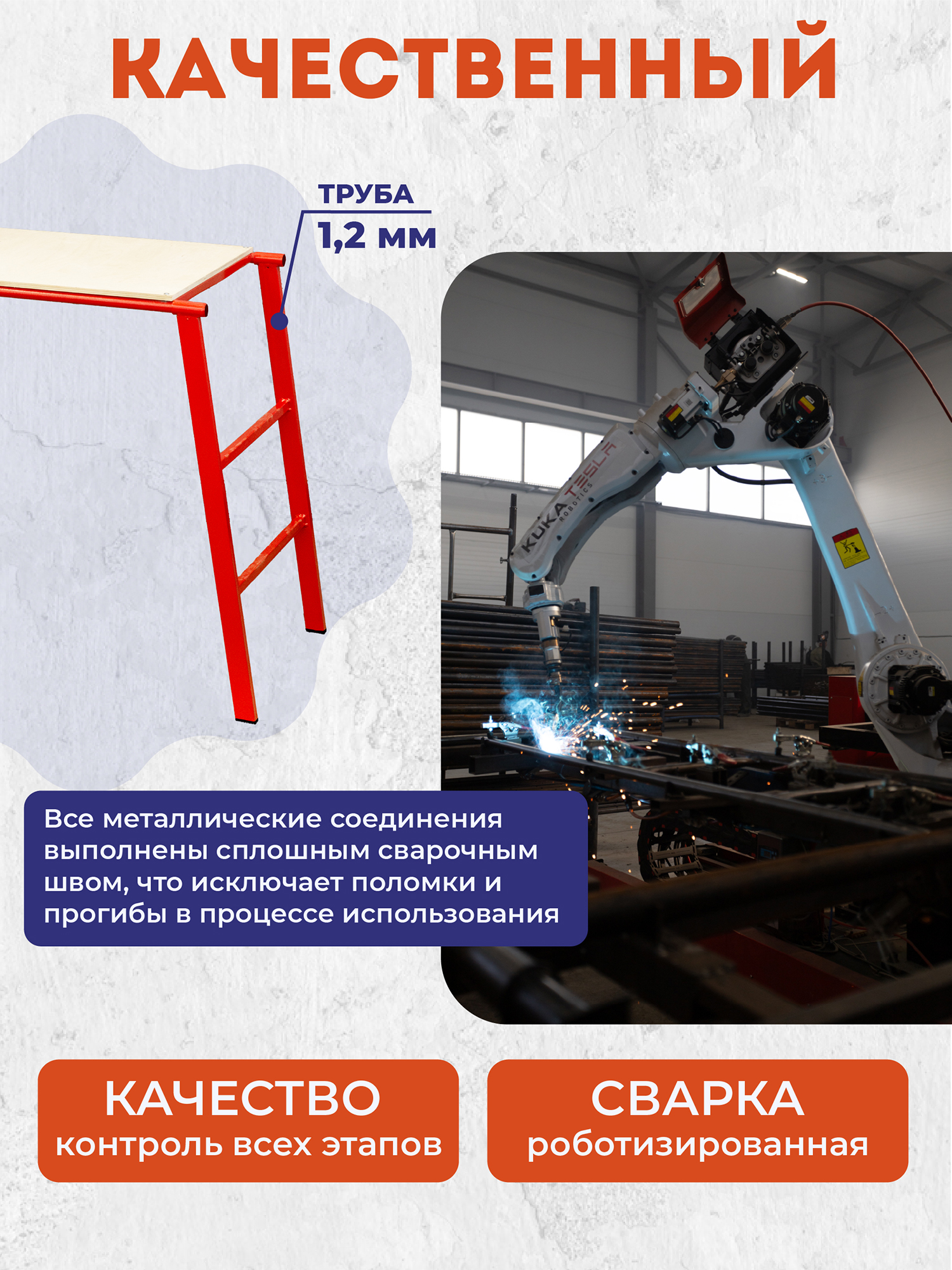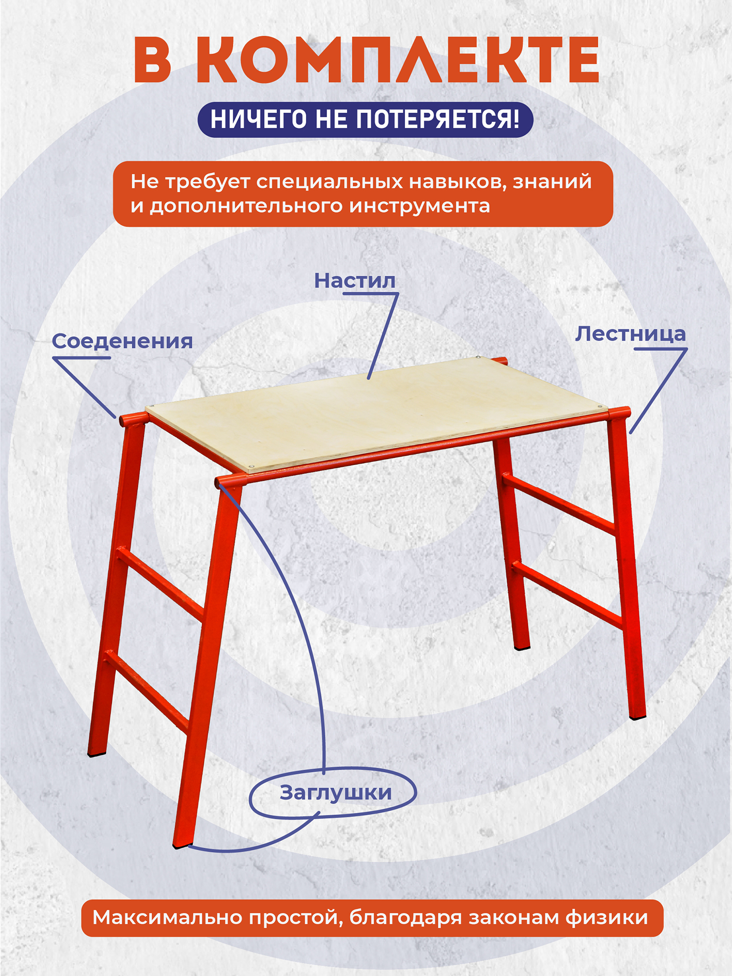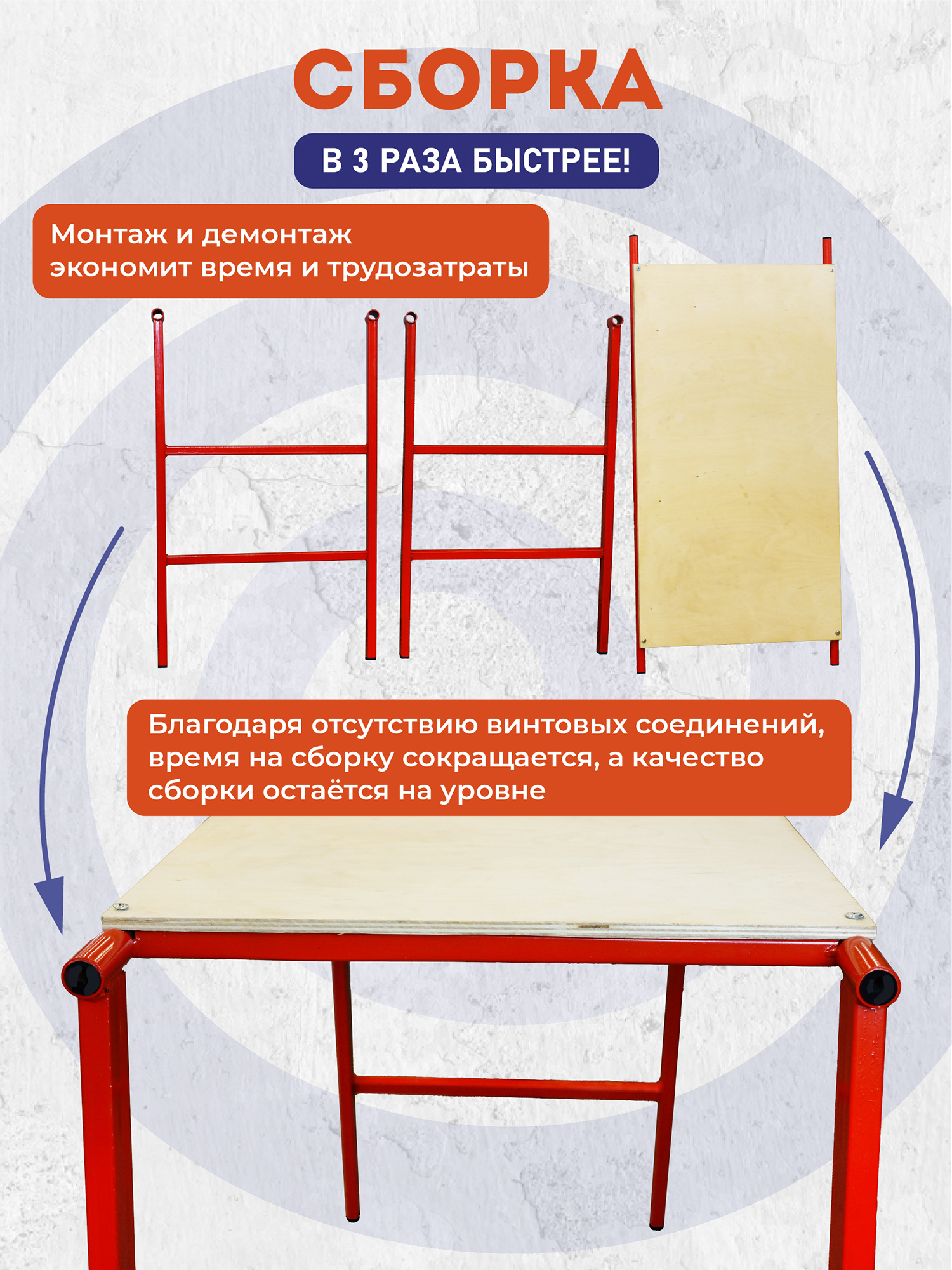 Столик имеет высоту 80 см, что обеспечивает комфортное рабочее положение и снижает усталость при длительной работе. Составная конструкция: Легко собирается и разбирается, что делает его идеальным для использования как на стройплощадке, так и в мастерской. Компактность конструкции облегчает транспортировку и хранение.