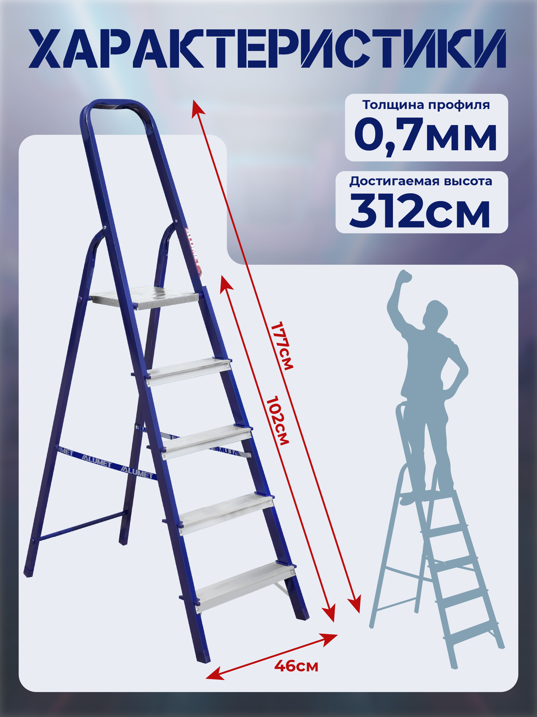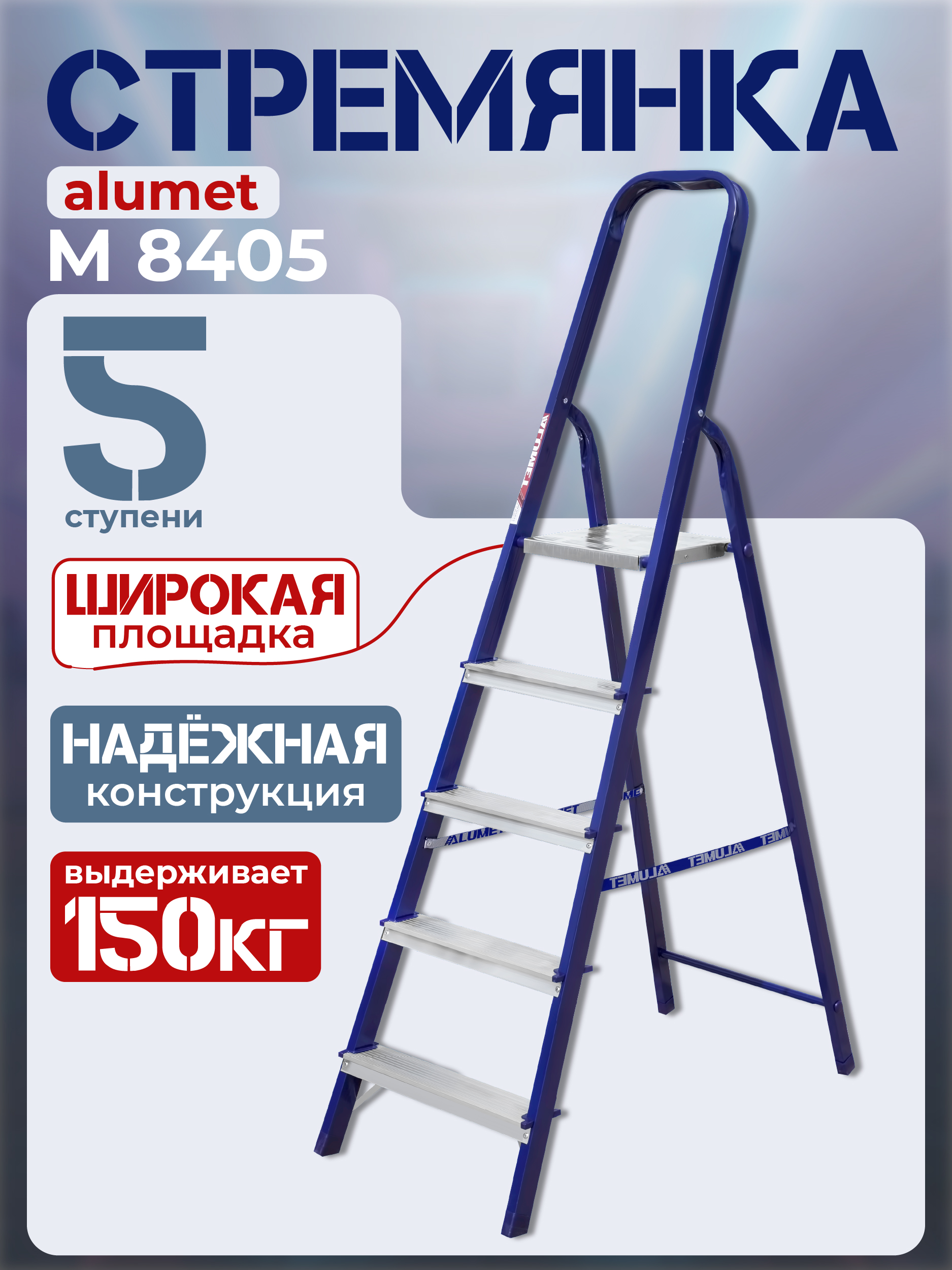 Главная » Каталог » Лестницы и стремянки » Стремянки Alumet » Стальные односторонние стремянки » Стремянка Alumet M 8405