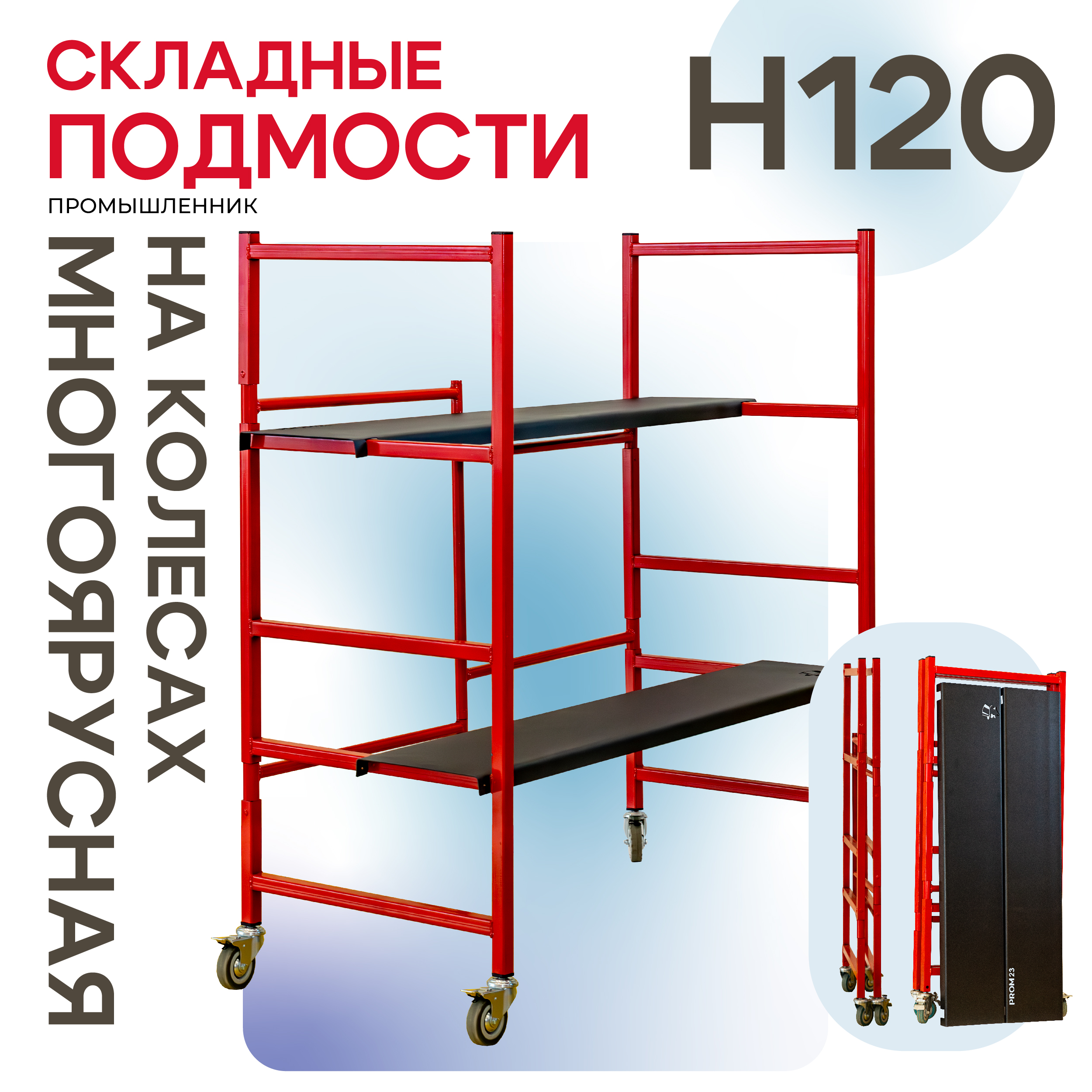 Подмости малярные многоярусные TeaM H120 – универсальное и надежное решение для ремонта, строительства и организации рабочего пространства. Компактные складные подмости легко хранятся и транспортируются в сложенном виде, изготавливаются и используются для самых разных задач. Они заменяют малярный стол, верстак, вышку-туру и стеллаж для инструментов, максимально удобны и функциональны для решения множества задач на любых объектах.