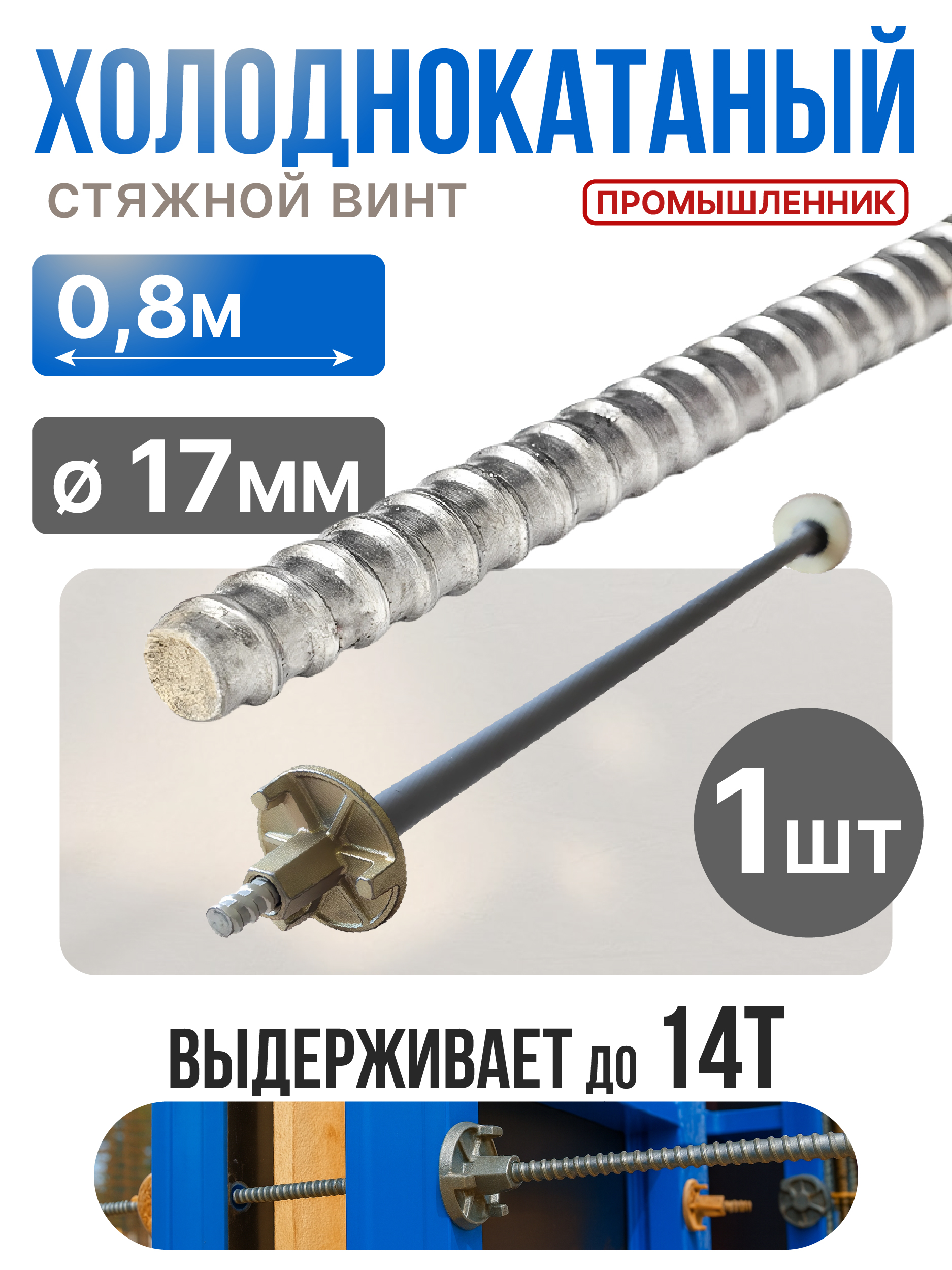Винт стяжной холоднокатаный 0,8 м. используется в частном и промышленном монолитном строительстве. Связующее звено при возведении опалубки стен и перекрытий.