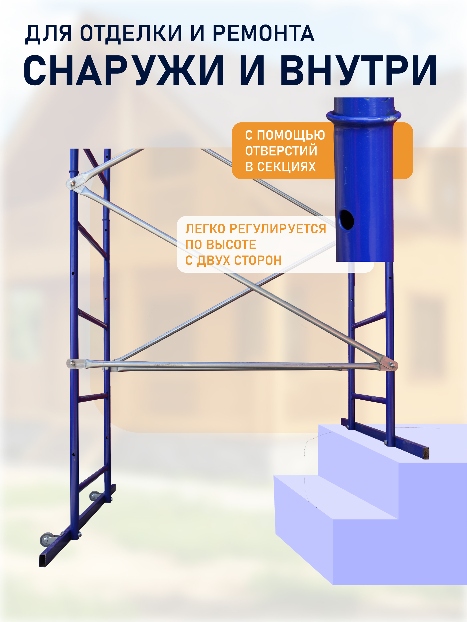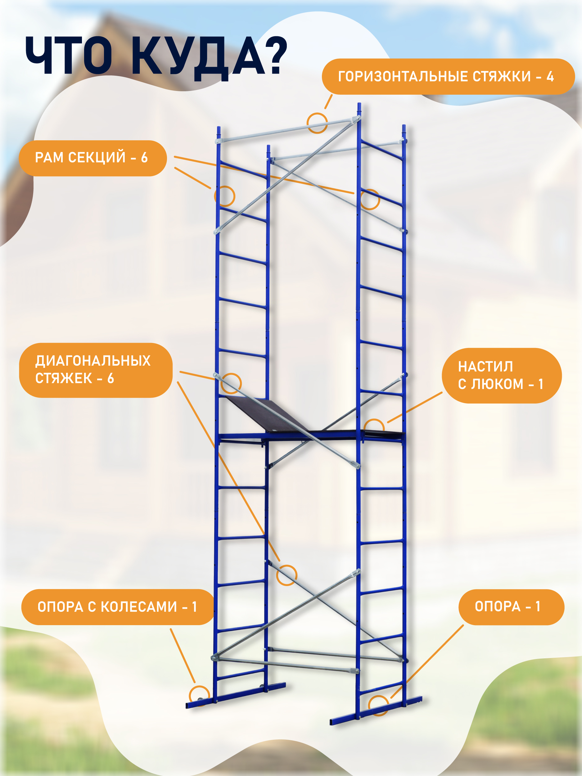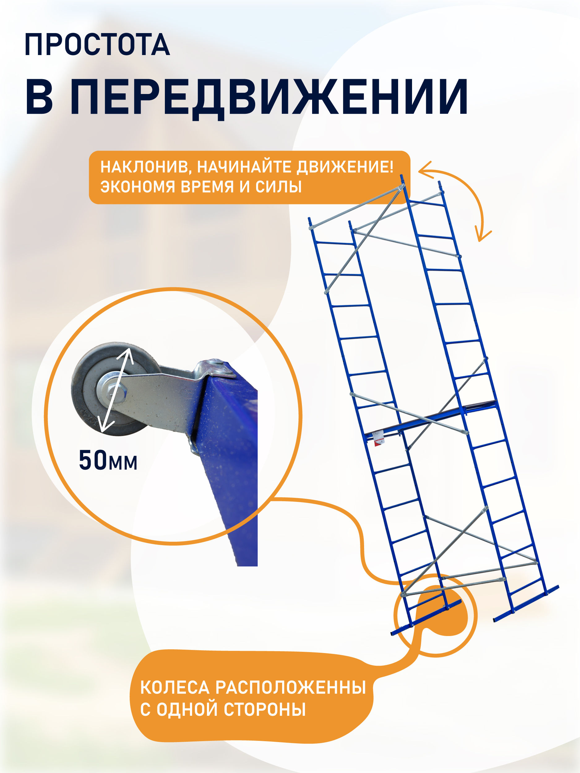 ✔ Мобильность: встроенные колеса обеспечивают легкое перемещение конструкции по объекту.