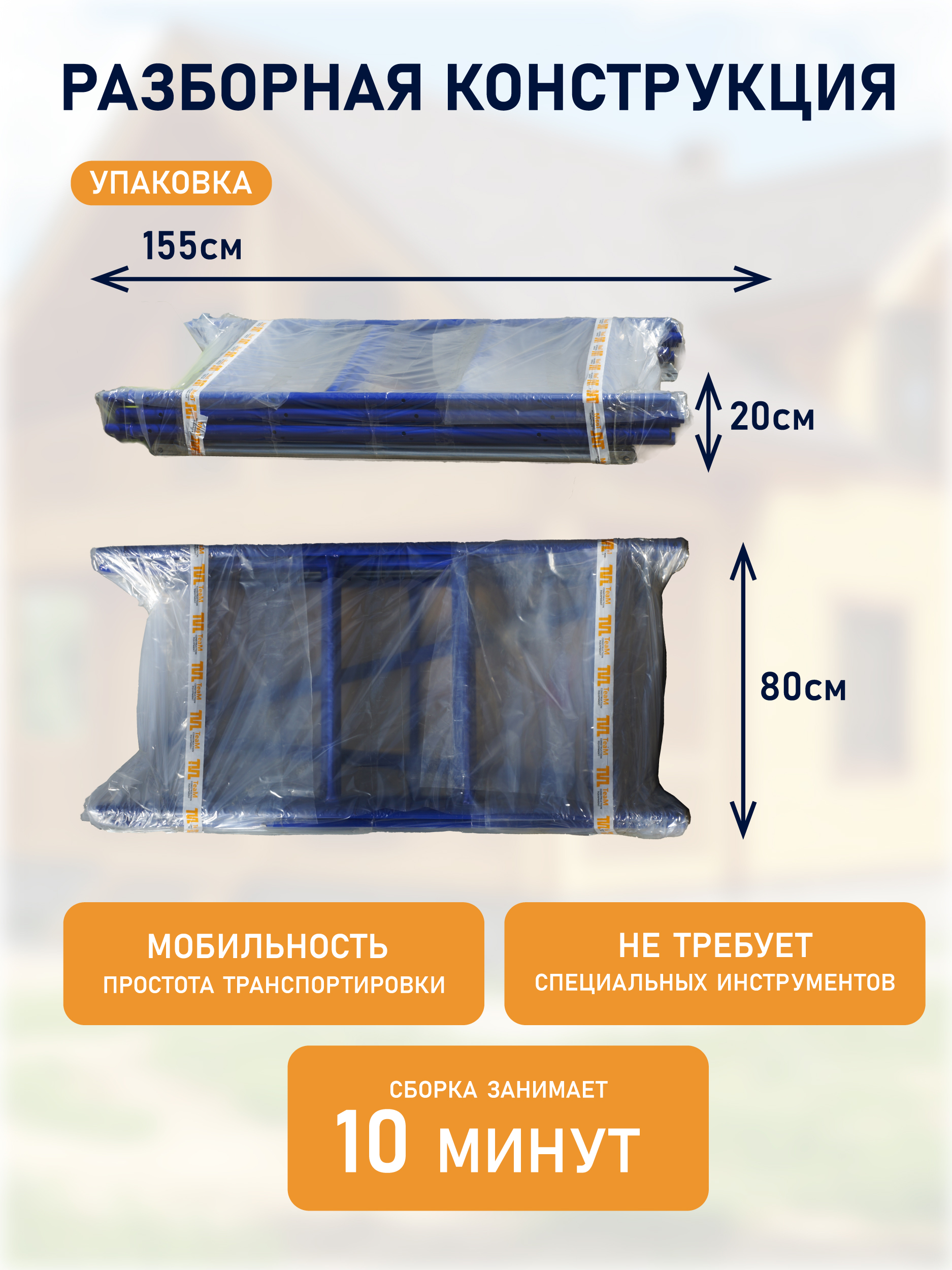 ✔ Простота сборки: один человек справляется за 15 минут без использования инструментов.