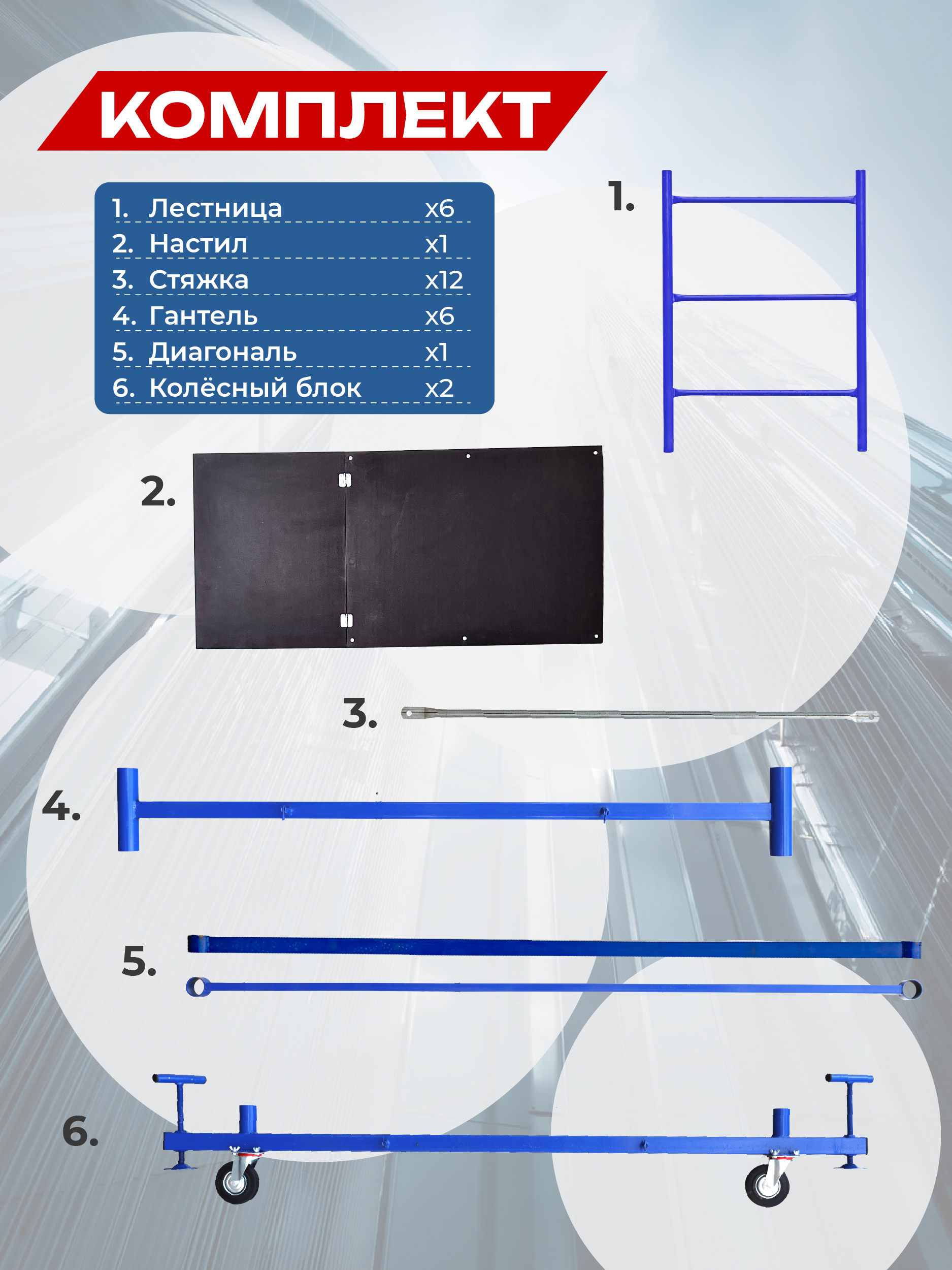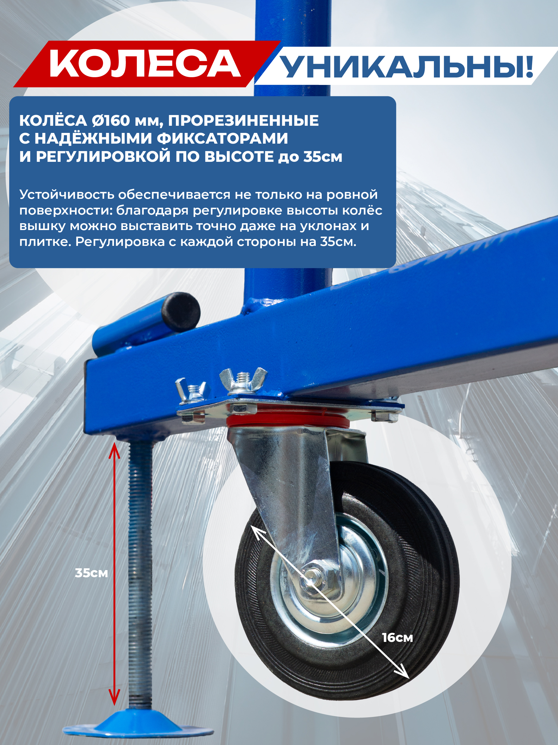 ВАЖНО: при высоте вышки более 5 метров рекомендуем использовать комплект стабилизаторов для обеспечения лучшей устойчивости и безопасности проводимых на вышке работ.