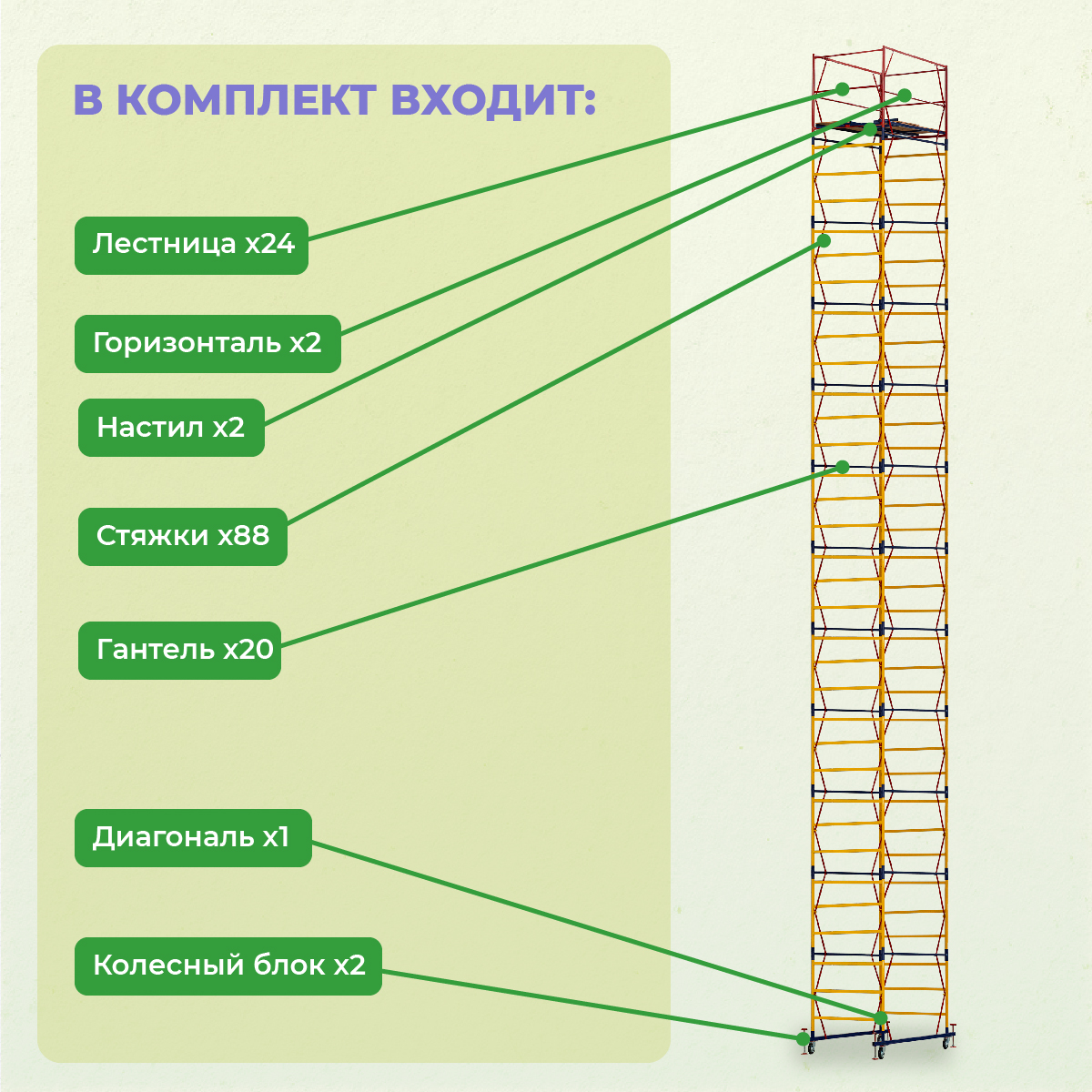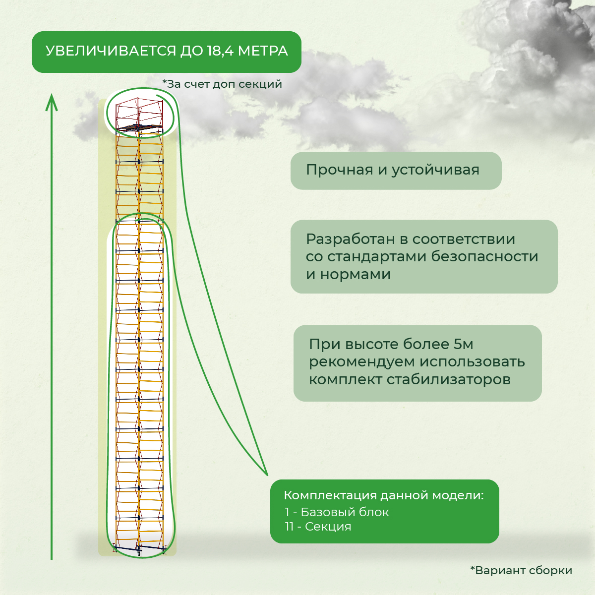 ВАЖНО: при высоте вышки более 5 метров рекомендуем использовать комплект стабилизаторов для обеспечения лучшей устойчивости и безопасности проводимых на вышке работ.