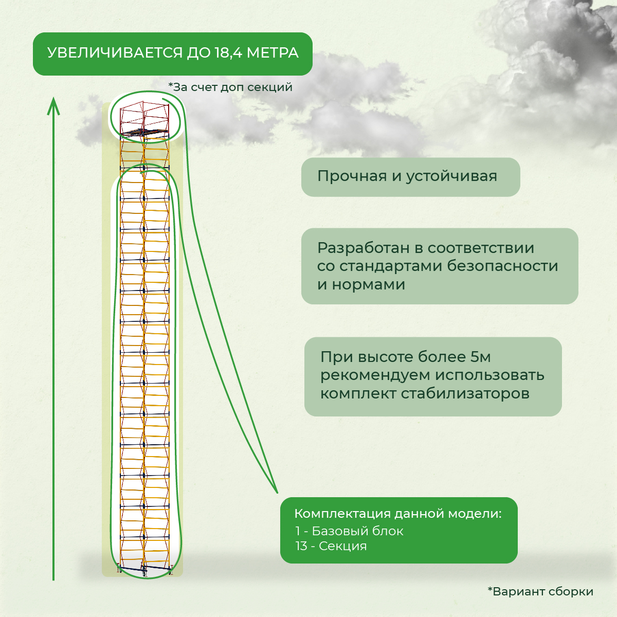 ВАЖНО: при высоте вышки более 5 метров рекомендуем использовать комплект стабилизаторов для обеспечения лучшей устойчивости и безопасности проводимых на вышке работ.