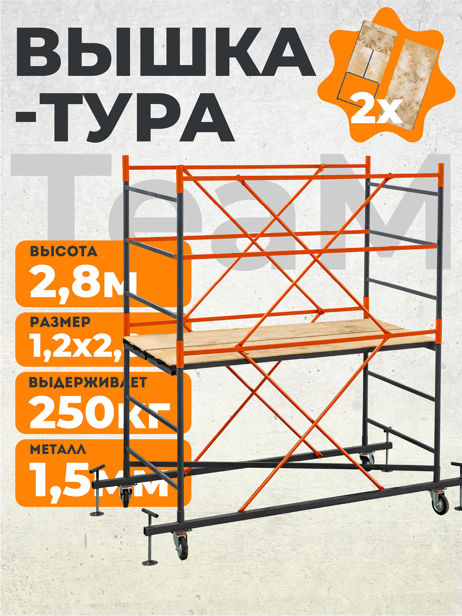 Вышка-тура TeaM ВСП 1.6х2.0, 2.8 м ver. 2.0