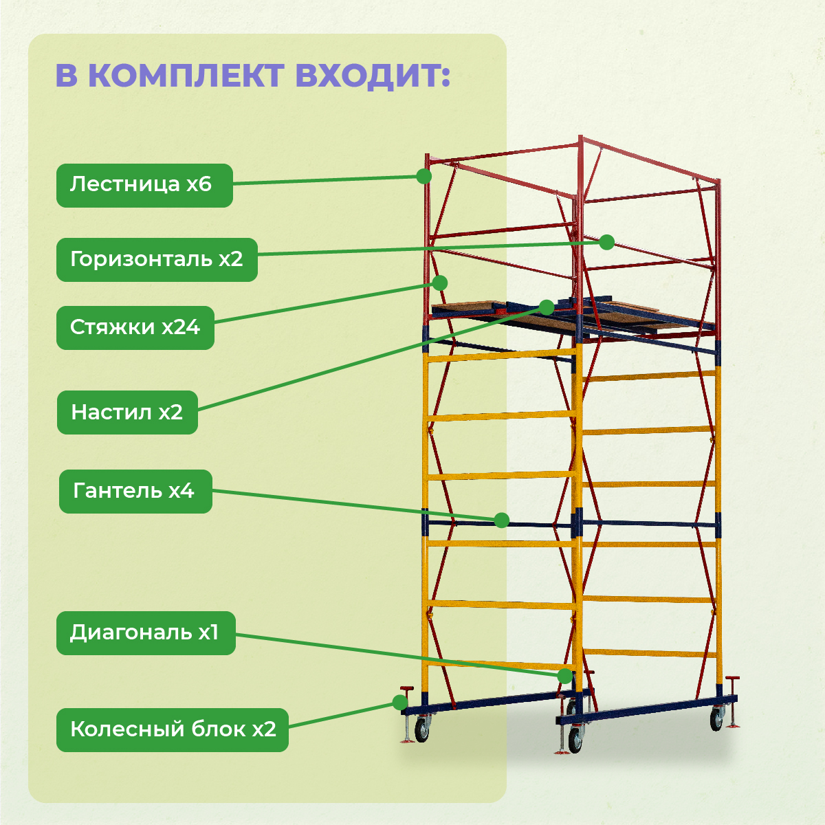ВАЖНО: при высоте вышки более 5 метров рекомендуем использовать комплект стабилизаторов для обеспечения лучшей устойчивости и безопасности проводимых на вышке работ.