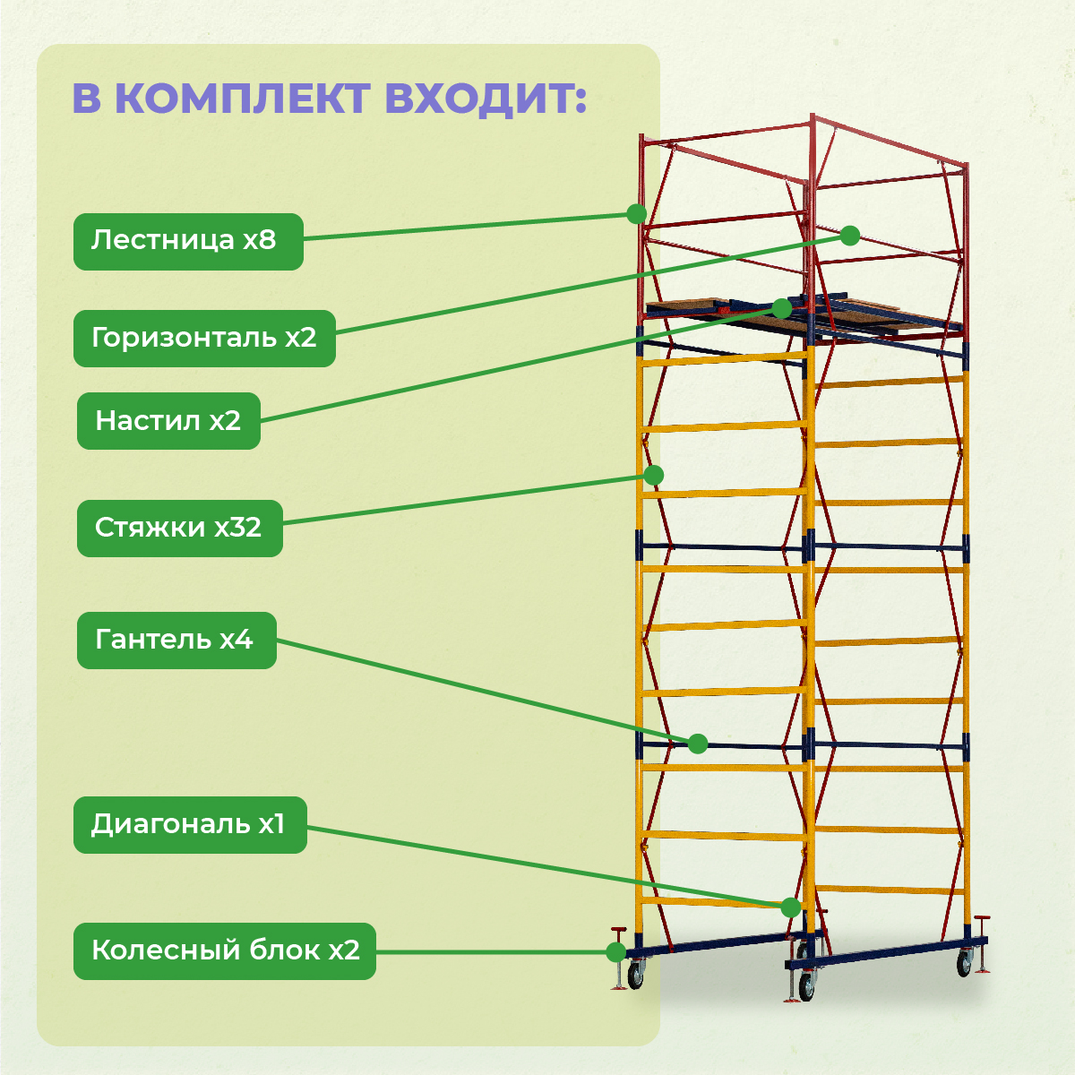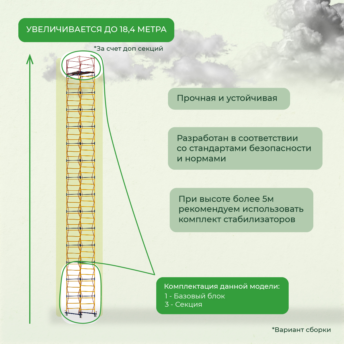 ВАЖНО: при высоте вышки более 5 метров рекомендуем использовать комплект стабилизаторов для обеспечения лучшей устойчивости и безопасности проводимых на вышке работ.