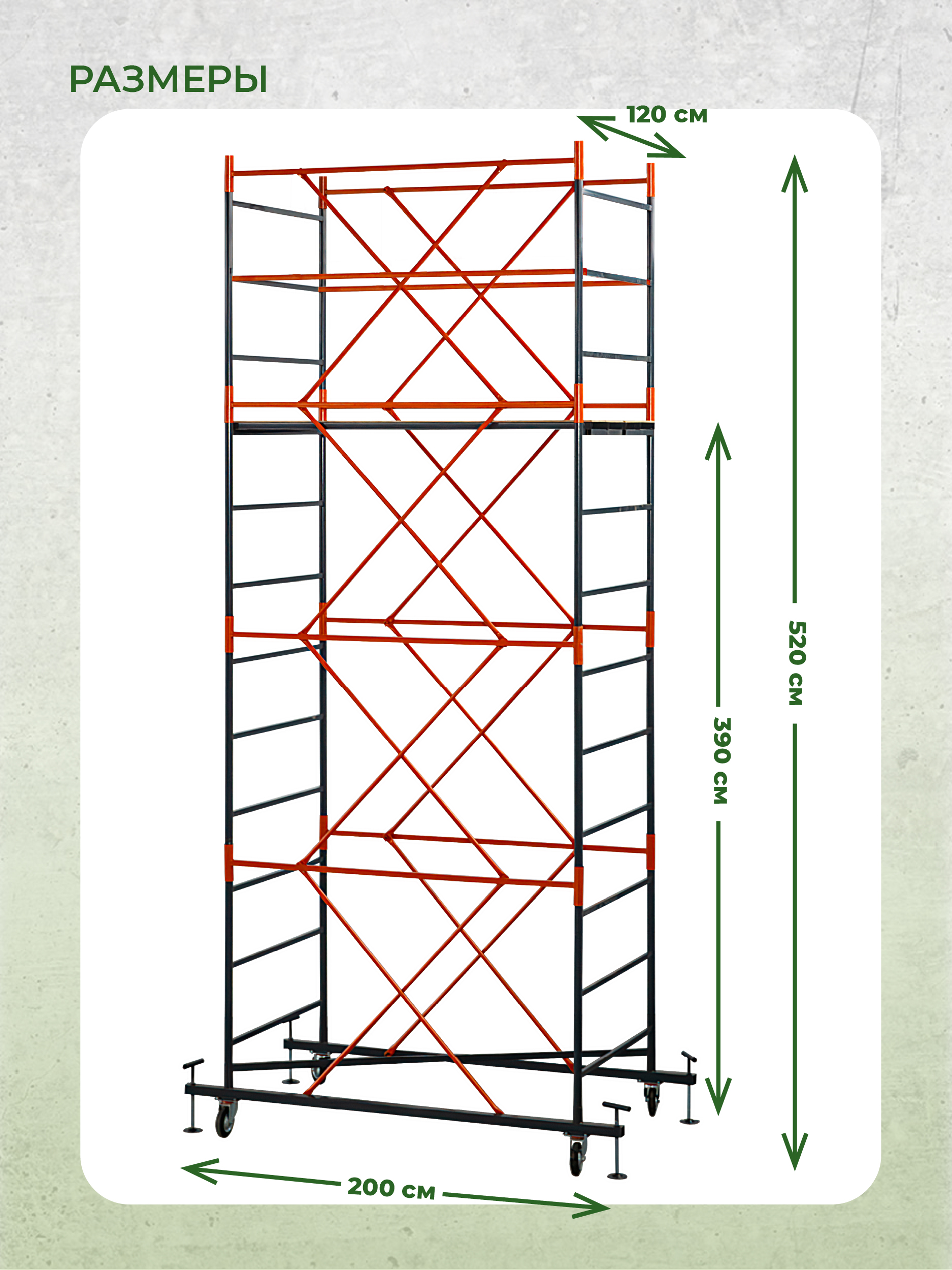 Сборно-разборная передвижная стальная вышка-тура TeaM высотой 5,2 метра* используется для различных строительных, монтажных, отделочных работ, а также ремонта внутри и снаружи помещений.