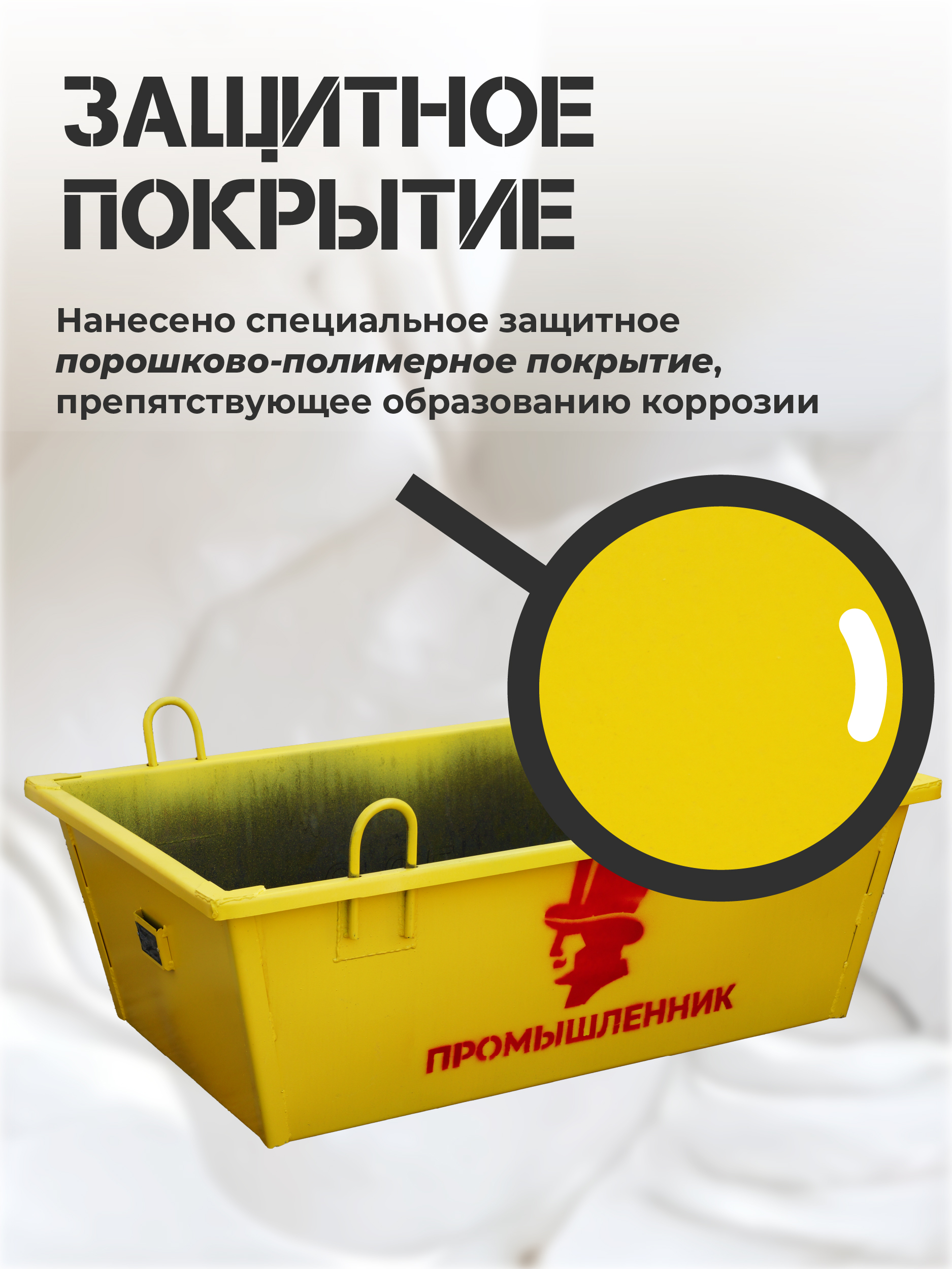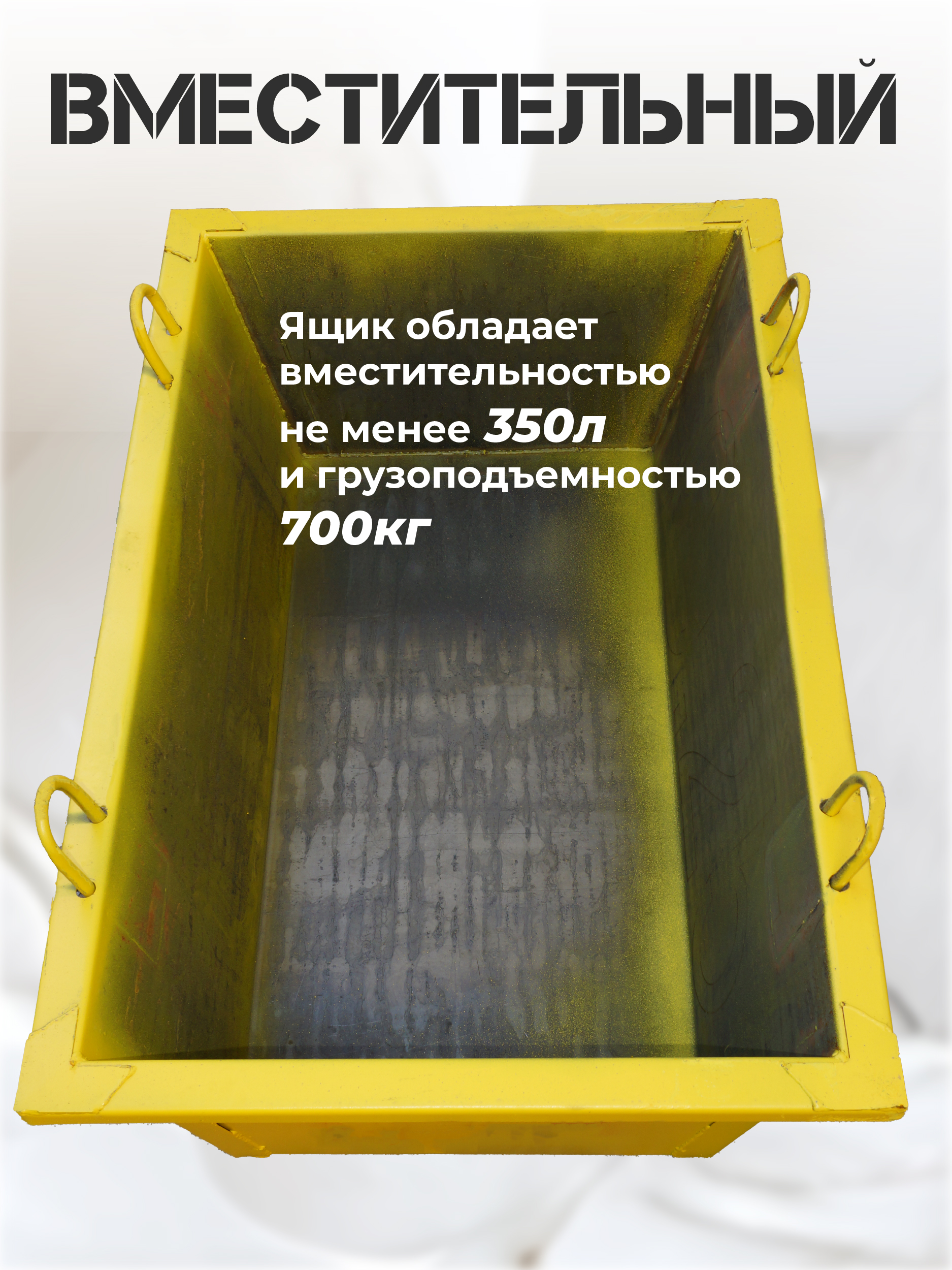 Для удобства транспортировки и подъёма предусмотрены специальные монтажные петли. С их помощью ящик легко закрепить за стропы и поднять краном на нужный уровень. Это решение позволяет оперативно подавать раствор к рабочему месту, экономить время и снижать трудозатраты.