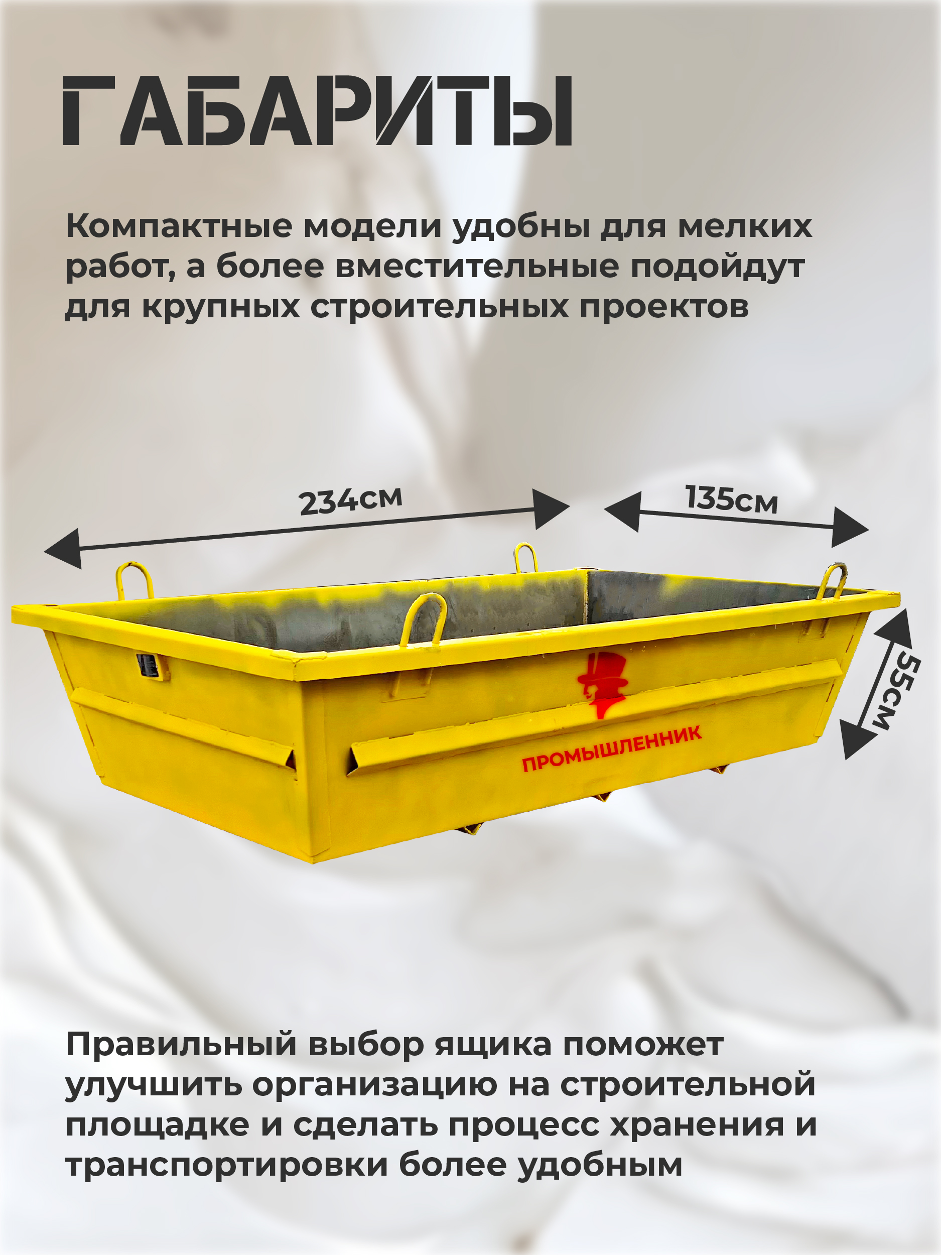 Для удобства транспортировки и подъёма предусмотрены специальные монтажные петли. С их помощью ящик легко закрепить за стропы и поднять краном на нужный уровень. Это решение позволяет оперативно подавать раствор к рабочему месту, экономить время и снижать трудозатраты.