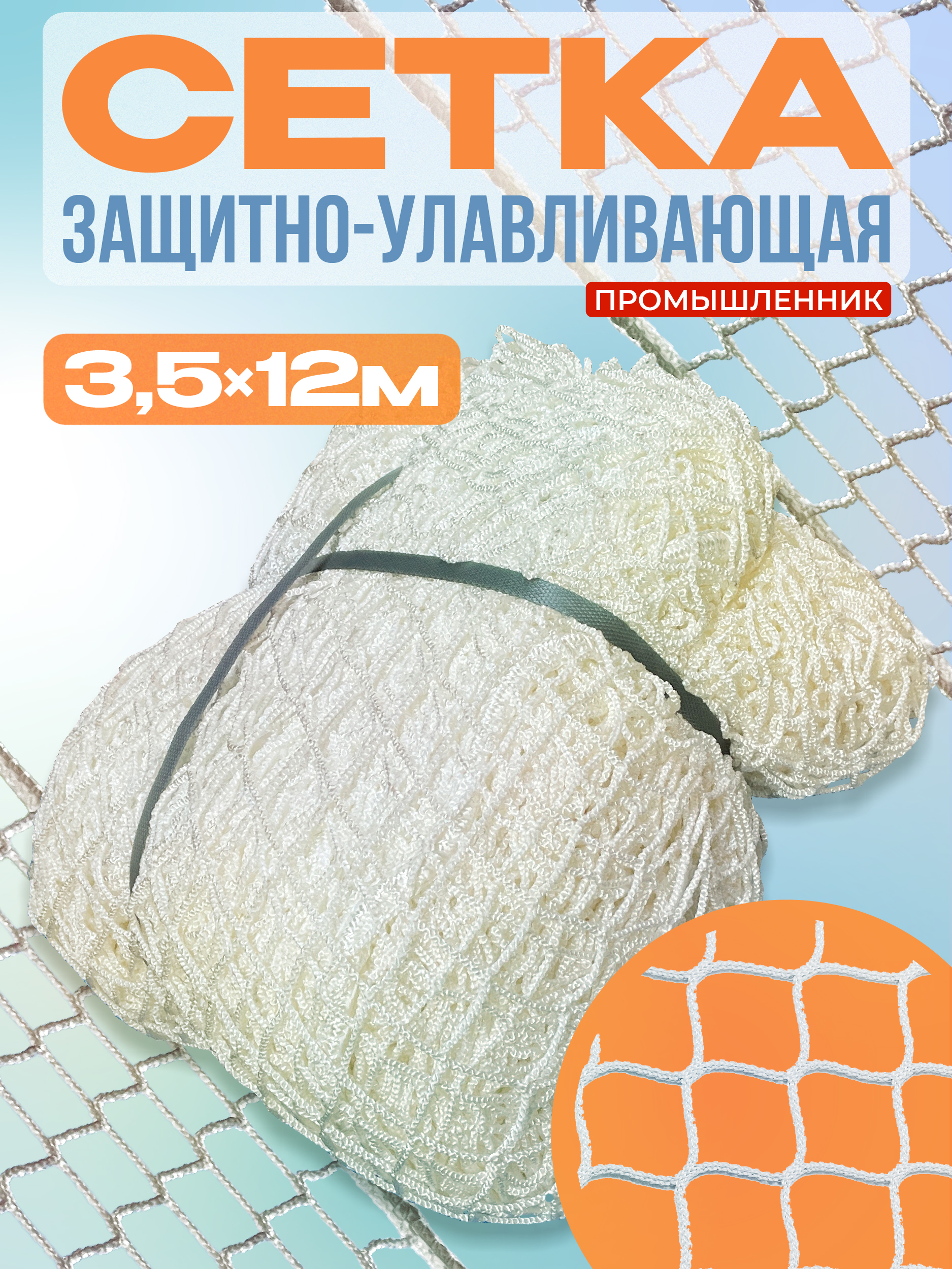 Защитно-улавливающая сетка (ЗУС) 3,5х12 м предназначена для ограждения рабочих мест на высоте. Выполняет страховочную роль и предохраняет человека от падения. Также предназначена для улавливания упавших с высоты различных предметов и строительного мусора при возведении новых и реконструкции действующих зданий и сооружений. Материал нити — крученое полиамидное (капрон) или полиэтиленовое волокно. Цвет сетеполотен — белый. Посадка сетного полотна осуществляется на капроновые (полиэтиленовые) плетеные шнуры, крученые веревки или канаты, комбинированные канаты (полипропилен + сталь)соответствующего диаметра. Ориентирование ячеи — ромбическое или квадратное.